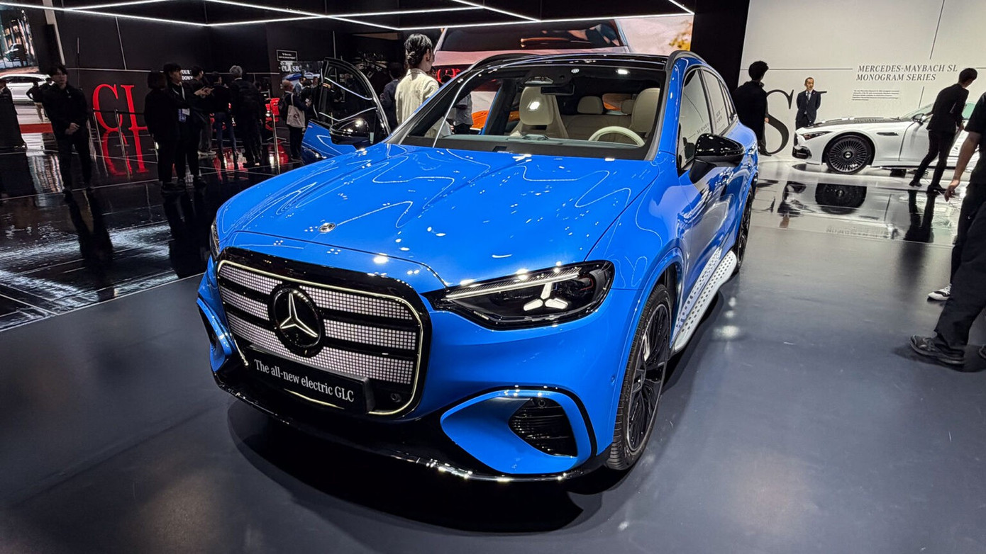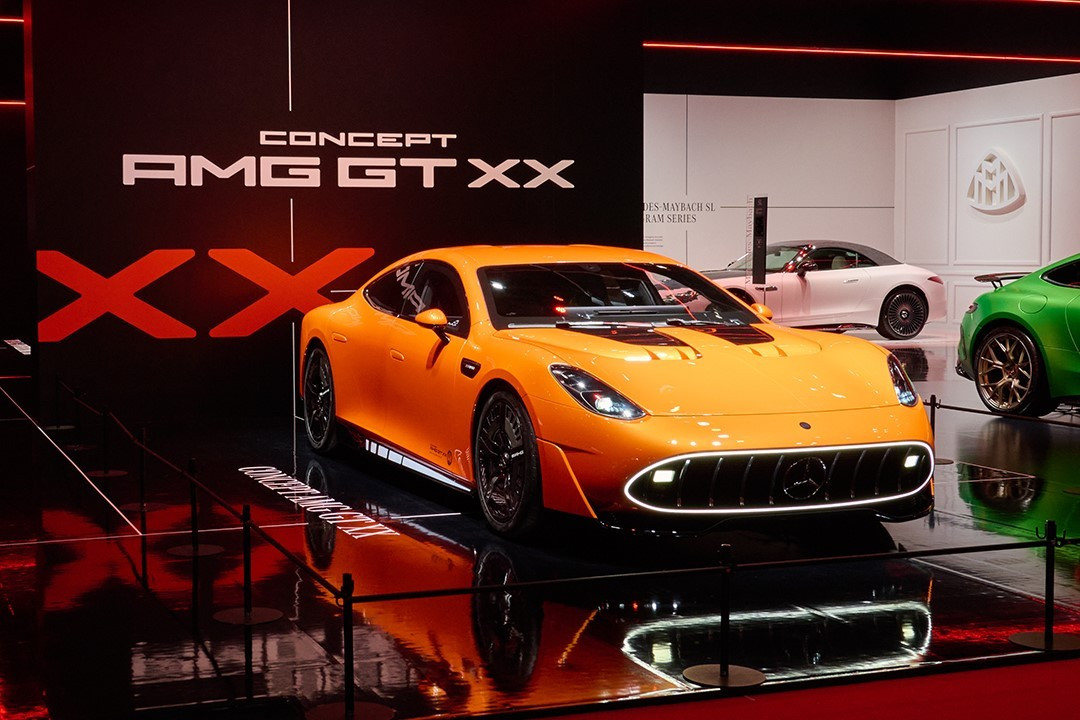 Không chỉ xe Nhật, triển lãm JMS 2025 còn có sự góp mặt của các thương hiệu Đức. Với Mercedes-Benz, hãng này đem tới mẫu GLC thuần điện hoàn toàn mới và concept xe điện GT XX (trái).