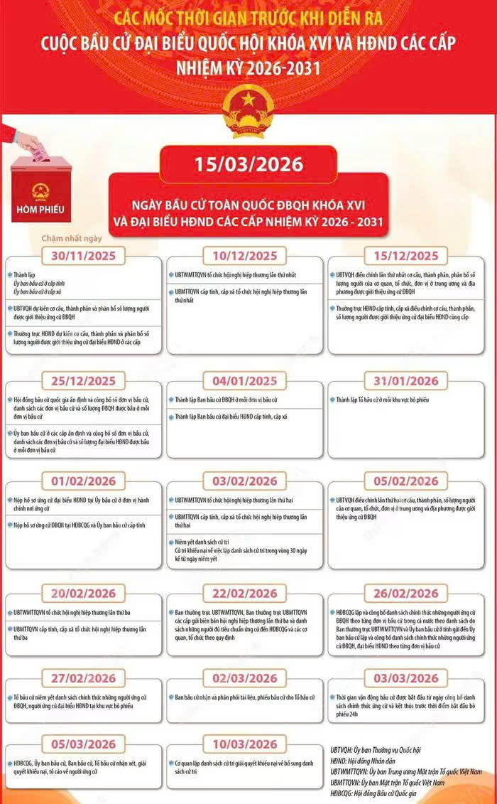 Nguồn Pháp Luật VN : https://baophapluat.vn/nhung-moc-thoi-gian-can-luu-y-trong-cuoc-bau-cu-dai-bieu-quoc-hoi-khoa-xvi-va-hdnd-cac-cap-nhiem-ky-2026-2031.html