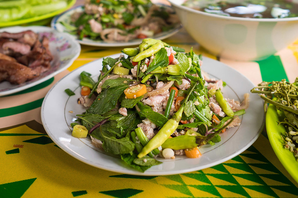 Tại quốc gia Lào, lạp là một trong những món ăn truyền thống ngày tết, thường gọi là gỏi Lào. Món này làm từ các loại thịt bò hoặc heo, gà đều được và thường ăn kèm dưa leo. Đối với người Lào, họ quan niệm món ăn mang lại may mắn, tài lộc cho những ai đang làm kinh doanh.