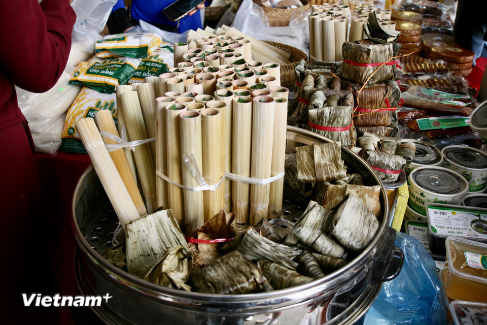 Cơm lam cùng bánh gai truyền thống. (Ảnh: Trịnh Huyền/Vietnam+)