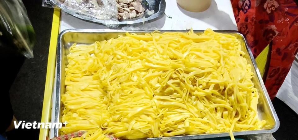 Màu sắc bắt mắt từ những sợi phở ngô Tuyên Quang được thái tay thủ công. (Ảnh: Trịnh Huyền/Vietnam+)