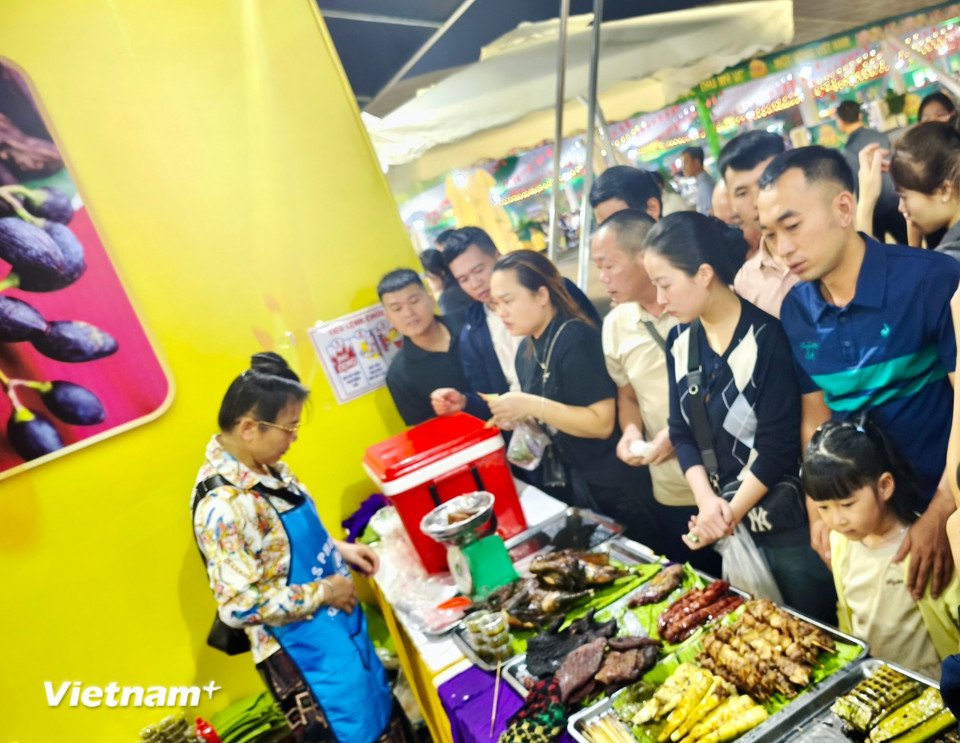 Gian hàng bán các món ăn vùng cao Tây Bắc luôn thu hút nhiều du khách. (Ảnh: Trịnh Huyền/Vietnam+)