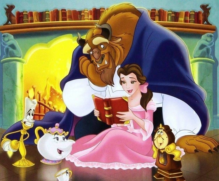 Belle và Quái vật trong Người đẹp và Quái vật: Belle trong Người đẹp và Quái vật tìm thấy niềm an ủi và phiêu lưu trong sách. Niềm đam mê văn học của Belle giúp cô nhìn xa hơn vẻ bề ngoài, tìm thấy vẻ đẹp bên trong và thách thức những quy ước dành cho phụ nữ cùng thời. Ngay cả nhân vật Quái vật cũng thể hiện khía cạnh trí thức của mình với thư viện sách đồ sộ. Bước ngoặt dẫn đến chuyển biến tâm lý quan trọng giữa hai nhân vật chính là lúc gã Quái vật đưa Belle tới thăm thư viện nguy nga với hàng nghìn cuốn sách của mình. Ảnh: Disney.