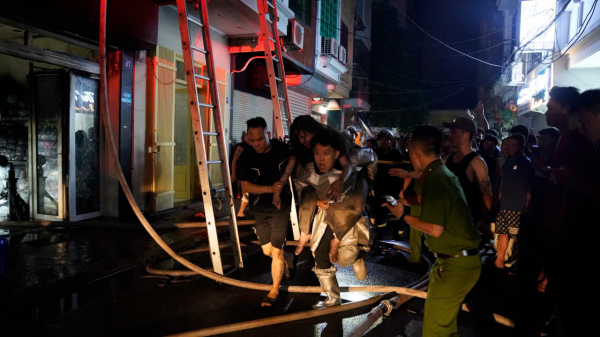 Các nạn nhân mắc kẹt tại ngôi nhà số 47 ngõ 131 Hồng Hà được đưa xuống khu vực an toàn, tiến hành sơ cấp cứu ban đầu và bàn giao cho lực lượng y tế.