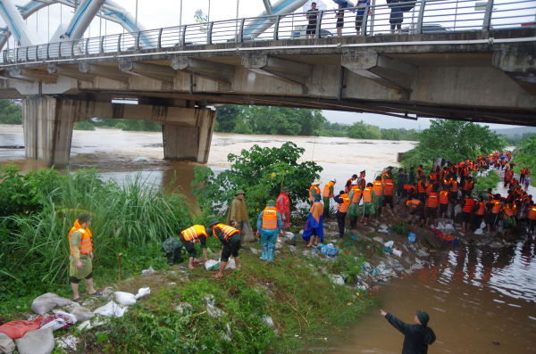 Mưa lớn khiến mực nước sông Cầu dâng lên nhanh, nhiều vị trí ngập nước lập mức kỷ lục, Giám đốc Công an tỉnh đã huy động hàng trăm cán bộ, chiến sĩ không kể đêm tối, mưa lớn phối hợp với lực lượng Quân đội và các đơn vị chức năng vận chuyển các nguyên vật liệu gia cố đê sông Cầu ở các vị trí xung yếu như đê Chã, đê Hà Châu, các lực lượng chạy đua với thời gian vận chuyển hàng ngàn bao đất đá đắp đê không để nước tràn vào trong đê, đồng thời vận động, sơn tán người dân ra khỏi khu vực nguy hiểm.