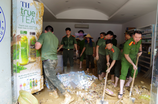 Sau mưa lũ, Công an tỉnh đã huy động hàng trăm lượt CBCS hỗ trợ, giúp đỡ bà con nhân dân vệ sinh môi trường, dọn dẹp nhà cửa để người dân sớm trở lại nhịp sống sinh hoạt bình thường