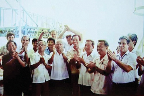 Phó chủ tịch Hội đồng Bộ trưởng Trần Quỳnh cùng với cán bộ lãnh đạo tỉnh Bà Rịa - Vũng Tàu và ngành Dầu khí vui mừng chào đón dòng dầu đầu tiên trên tàu khoan Mikhain Mirchin (năm 1984) - Ảnh tư liệu