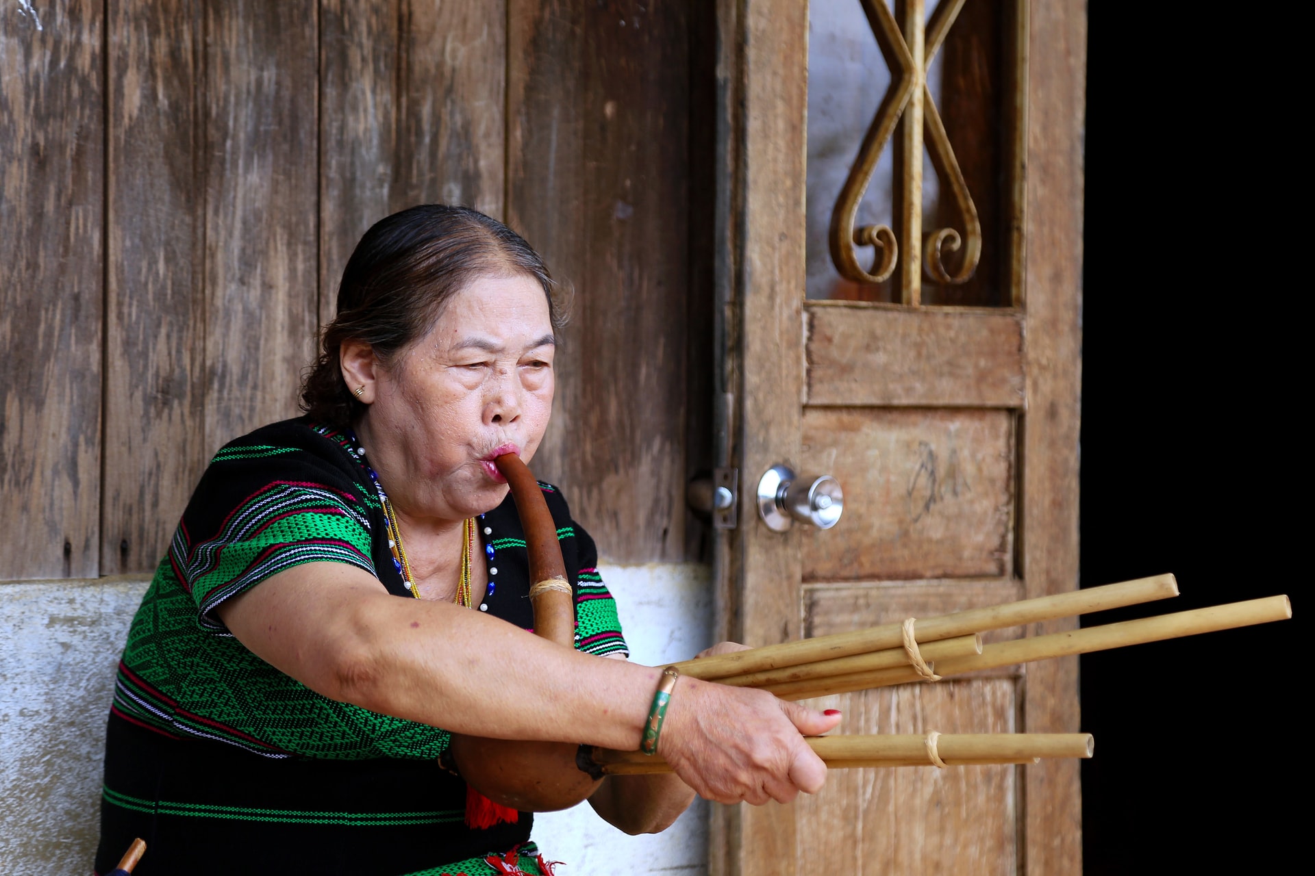 Nghệ nhân H’Grao nổi tiếng bởi khả năng thổi M’Buốt - một loại nhạc cụ khó và thường chỉ có đàn ông sử dụng được