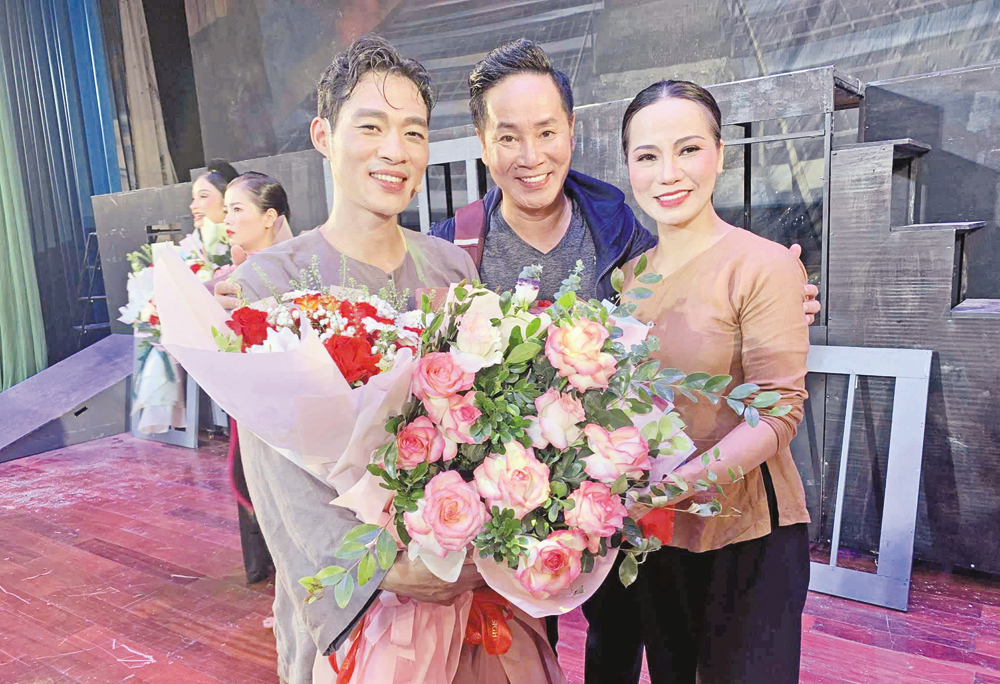 Đồng nghiệp chúc mừng nghệ sĩ Phùng Thế Quỳnh (ngoài cùng bên trái).