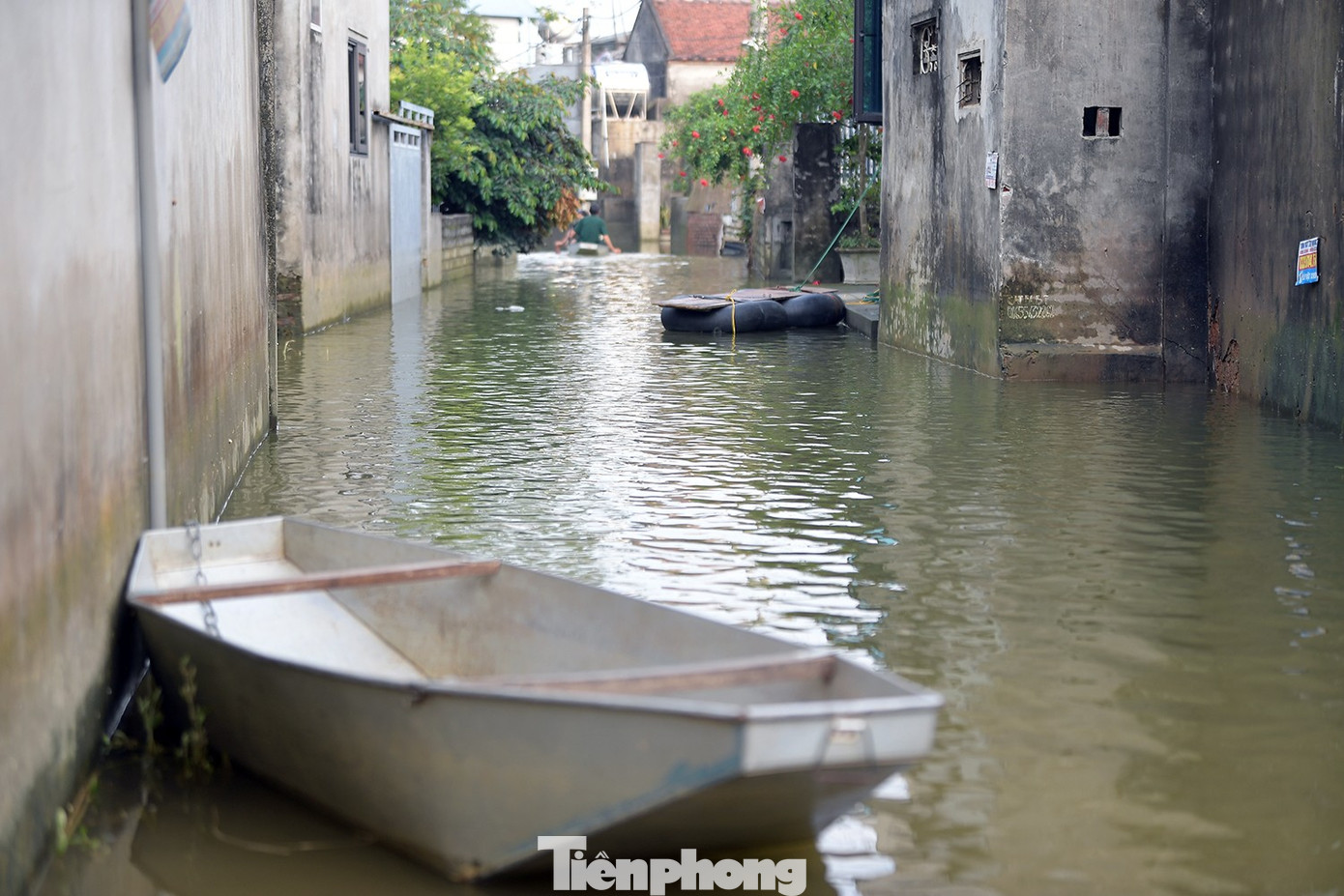 Người dân nơi đây ví von, “cả làng biến thành làng nổi”. Trong những ngày này ở thôn, thuyền là phương tiện duy nhất để di chuyển. Những chiếc thuyền nan, thuyền gỗ vốn dùng đánh cá nay trở thành “xe gia đình”, chở trẻ em, người già, gạo, nước uống và đồ sinh hoạt.