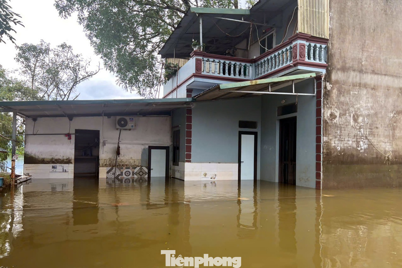 Mưa lớn kéo dài từ ngày 29/9, cộng với nước sông dâng cao, khiến toàn thôn ngập sâu. Nhiều nơi nước vào tận trong nhà, ngập nửa tường.