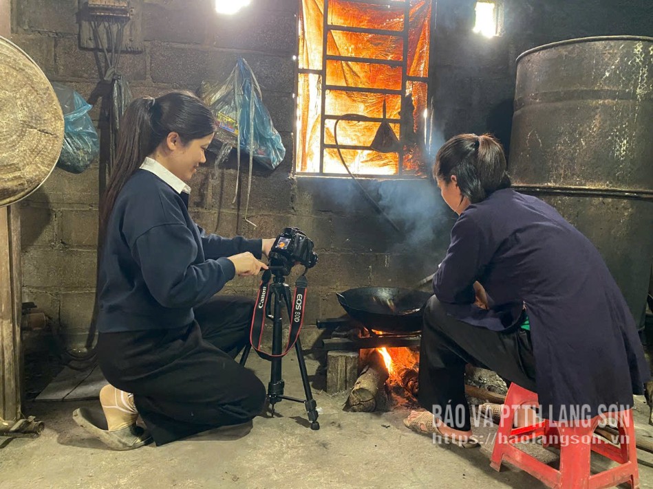 Phóng viên Báo và Phát thanh, Truyền hình Lạng Sơn tác nghiệp quy trình làm bánh truyền thống của dân tộc Tày, Nùng