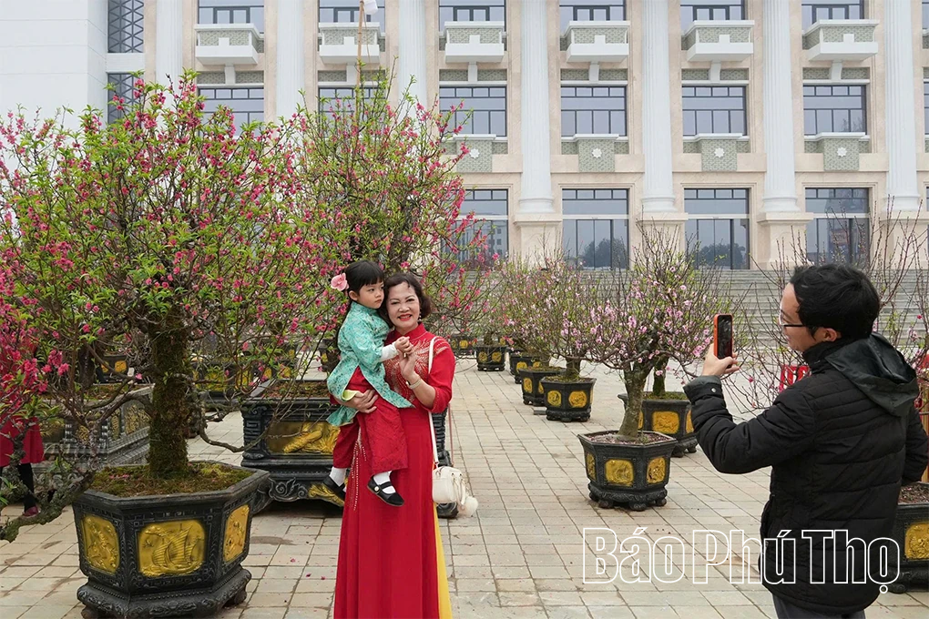Các khu vực trưng bày hoa Tết tại phường Việt Trì thu hút đông người dân đến tham quan, chụp ảnh kỷ niệm.
