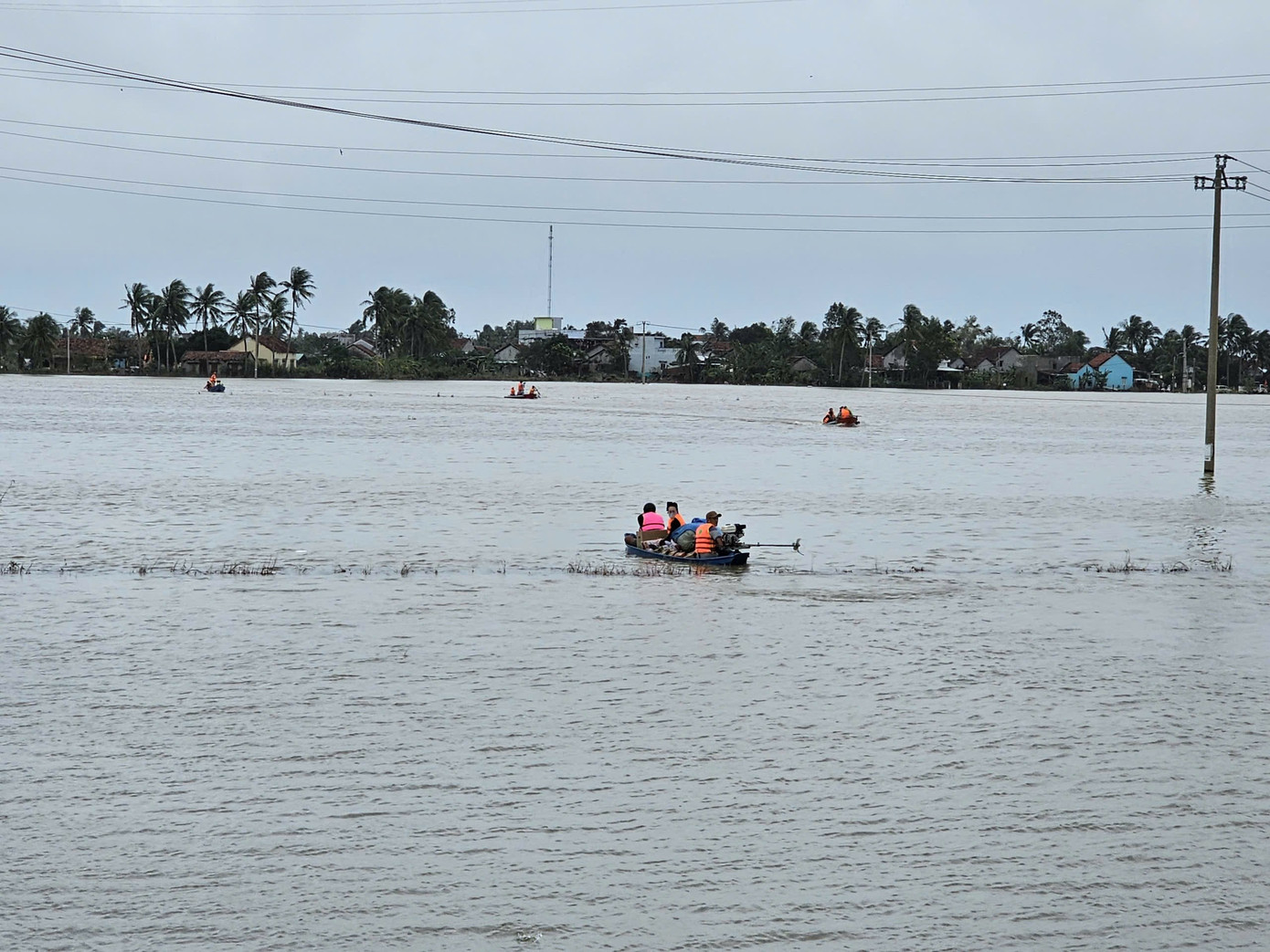 “Nước lút mái nhà, nhìn đâu cũng thấy người kêu cứu”, anh Hiệu nhớ lại. Ngày 20/11, nhóm của anh thực hiện liên tục 4 chuyến cứu hộ, đưa người già, phụ nữ và trẻ nhỏ ra khỏi khu vực nguy hiểm. “Cứ thấy tay ai vẫy là ghé vào cứu thôi. Hôm đó, chúng tôi đưa được cả trăm người đến nơi an toàn”, anh Hiệu kể.