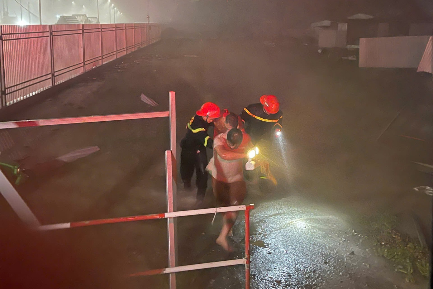 Lực lượng cứu hộ giải cứu người dân bị mắc kẹt trong bão số 10.