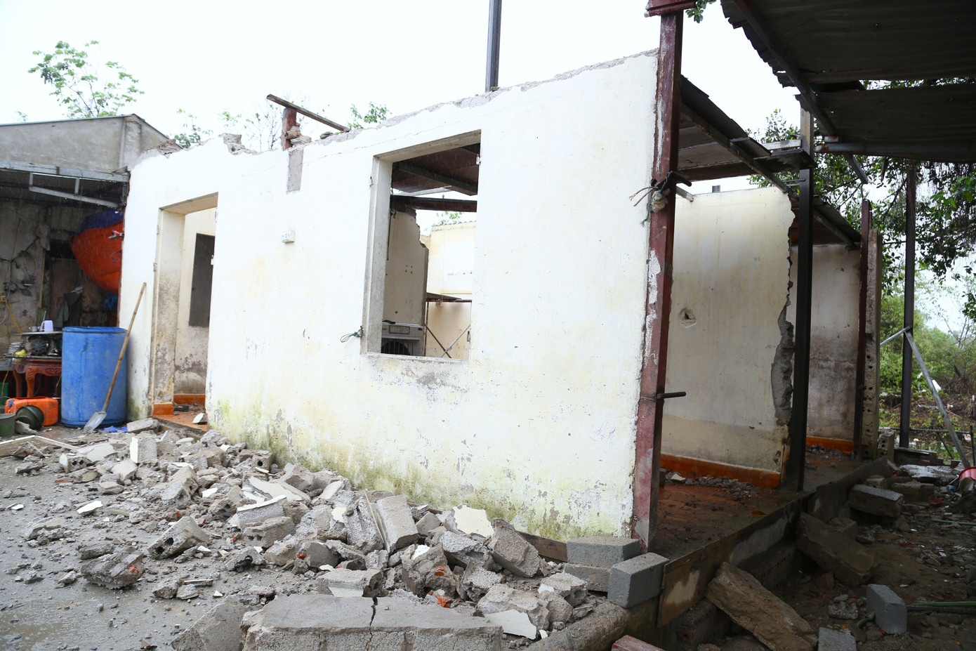 Căn nhà của vợ chồng anh Mạnh bị bão tàn phá tan hoang