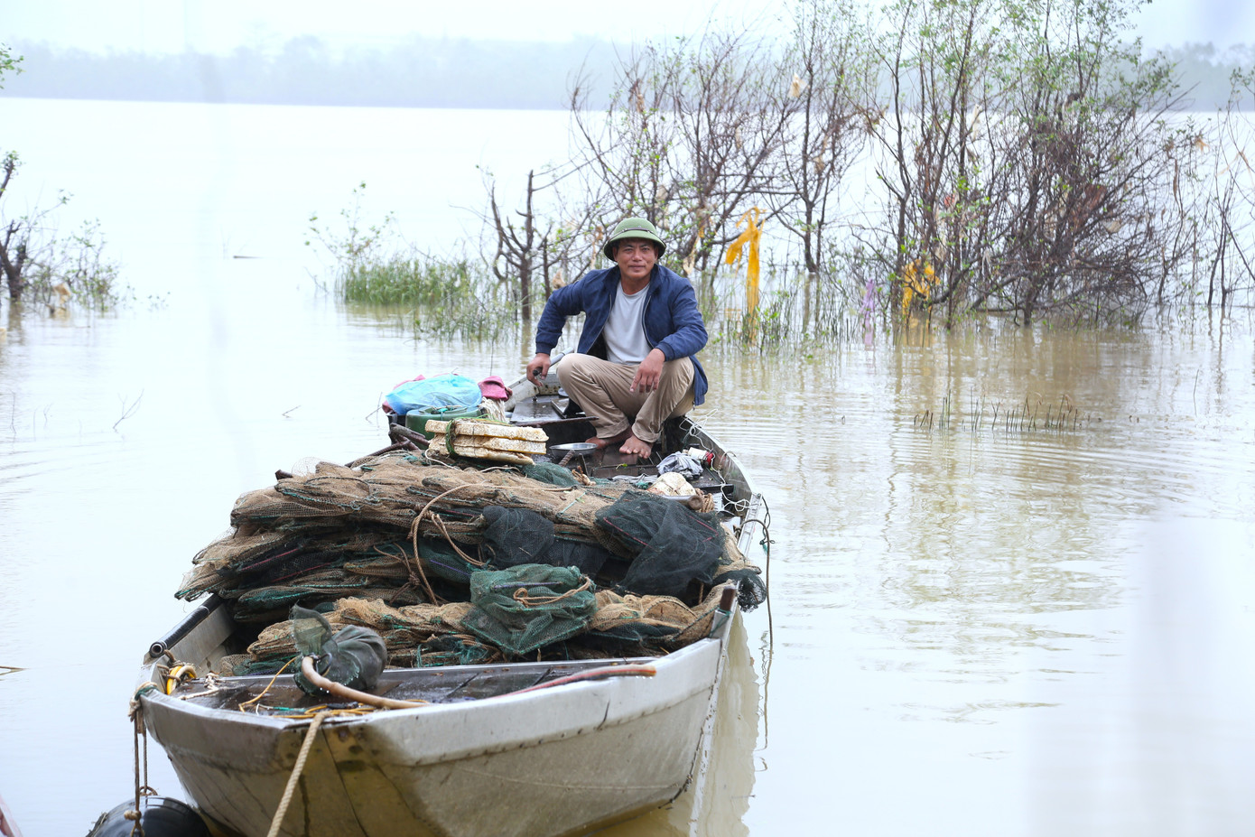Con thuyền nhỏ vừa là phương tiện mưu sinh, vừa giúp vợ chồng anh Mạnh đi cứu người