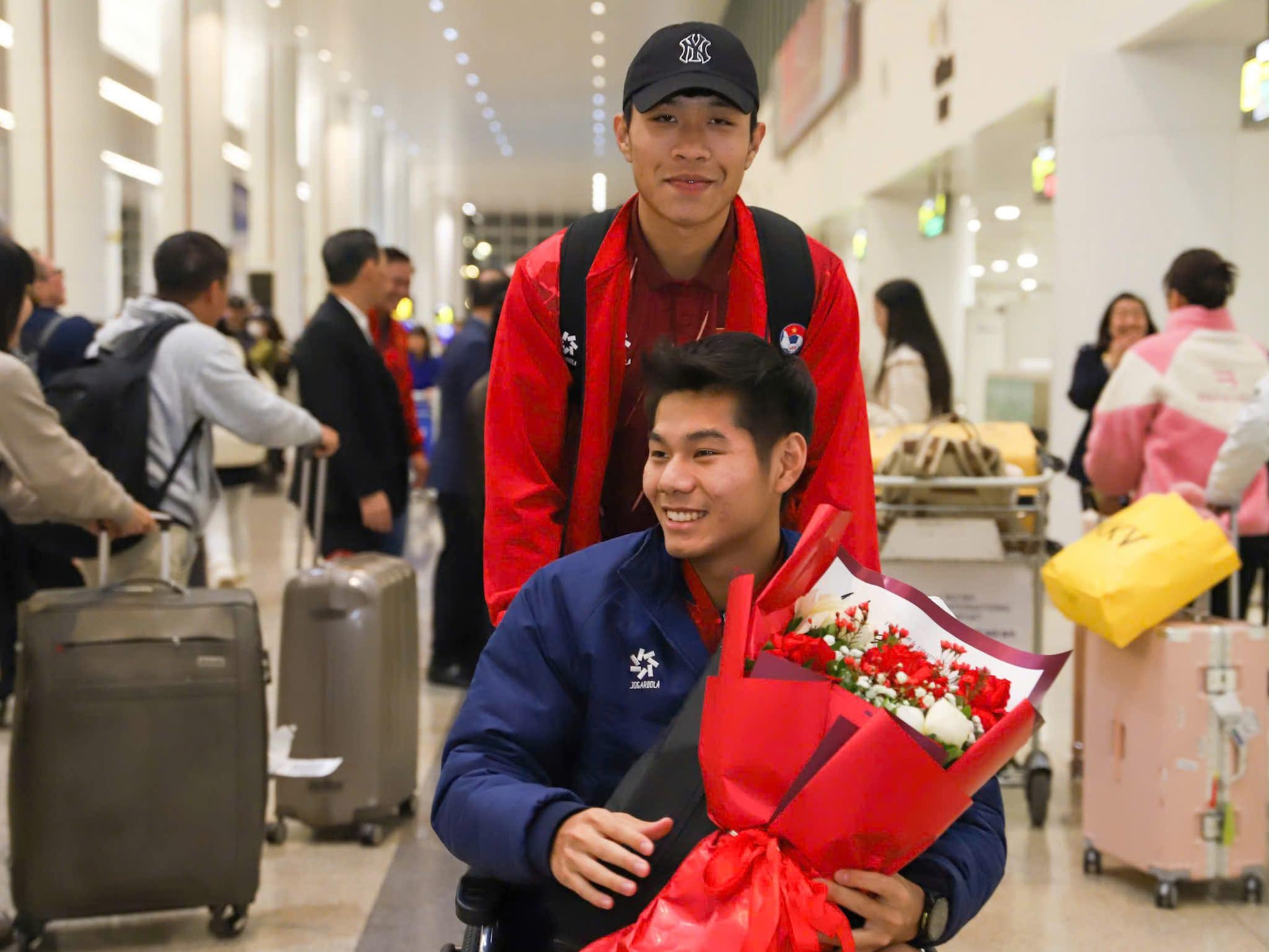 Linh đạo Cục Thể dục Thể thao Việt Nam đón đoàn tại sân bay Nội Bài. Ảnh VFF