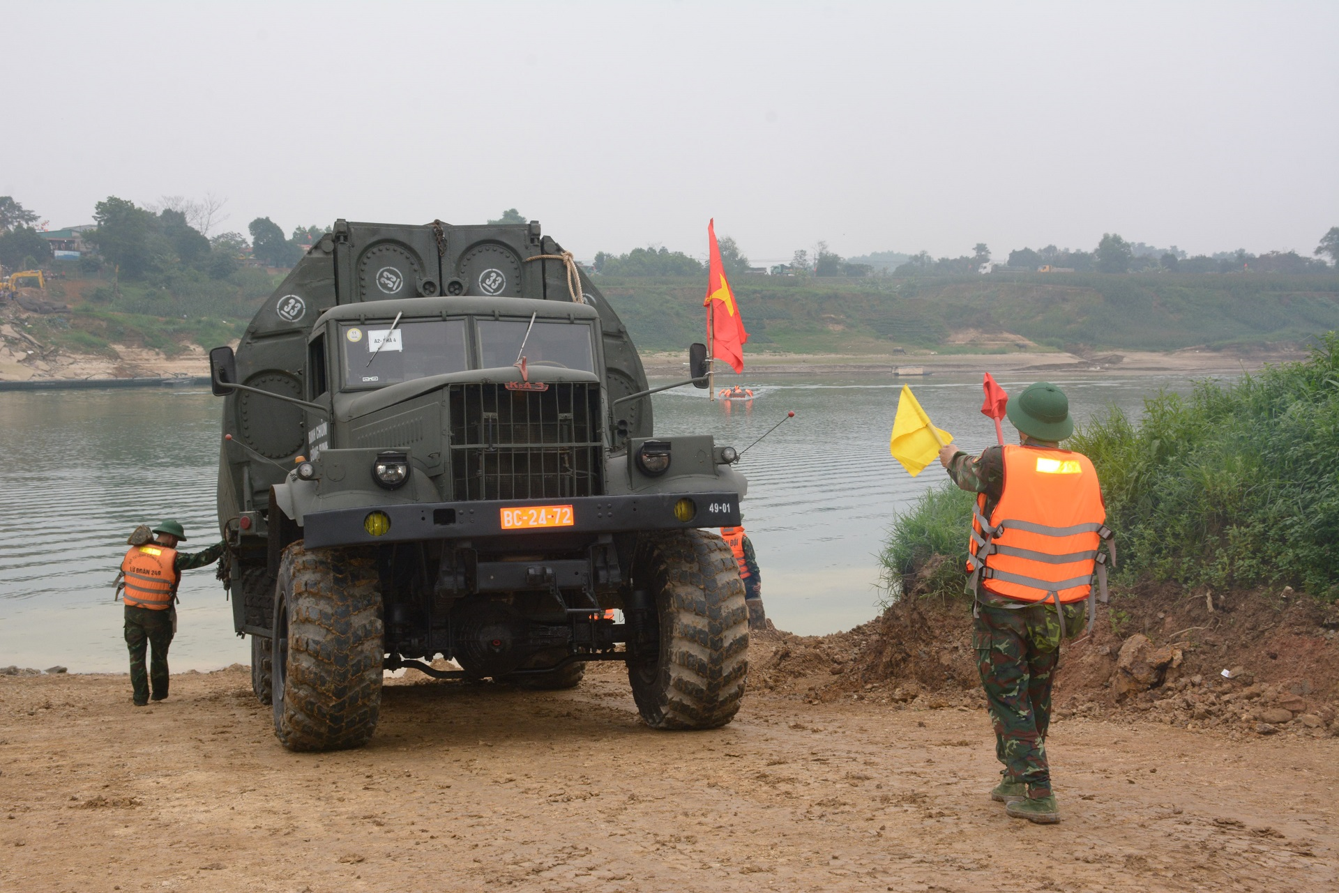 Tại bến sông Lô, công việc bắt đầu ngay khi lực lượng tập kết. Gió mùa thổi mạnh, nước sông lạnh buốt. Nhưng từng tổ, từng nhóm cán bộ, chiến sĩ vẫn khẩn trương triển khai nhiệm vụ. Những đốt cầu phao nhanh chóng được hạ thủy, những sợi cáp được siết chặt, từng tấm mặt cầu dần được ghép nối.