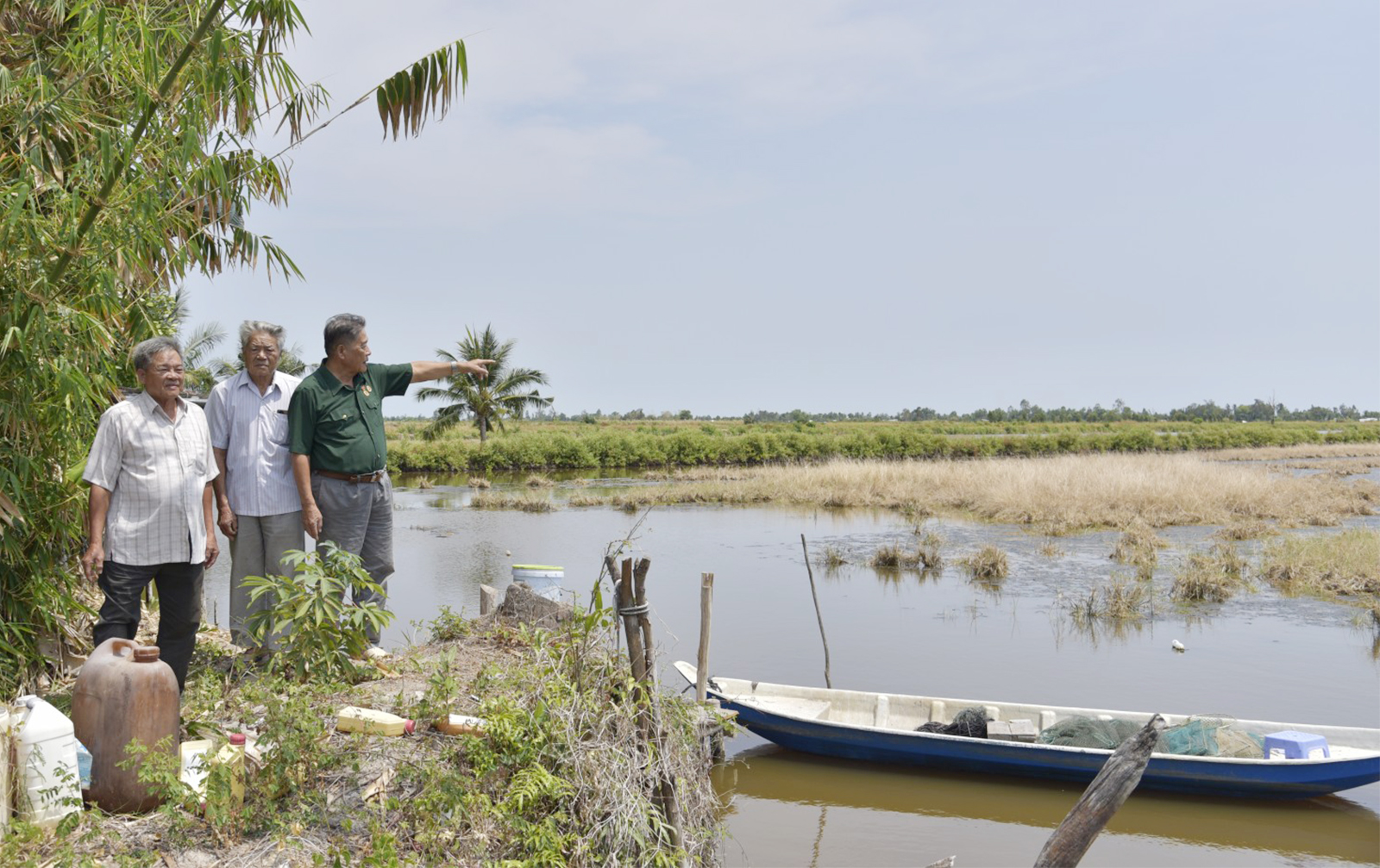Ba cựu du kích trở lại cánh đồng năm xưa, nơi từng là đồn bót của địch bị lực lượng cách mạng xóa sổ, nay hồi sinh trong màu xanh yên bình của quê hương.