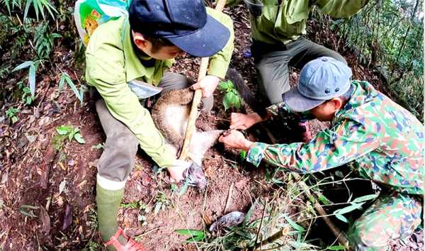 Gỡ bỏ bẫy, giải cứu thú rừng trong Vườn quốc gia Pù Mát.