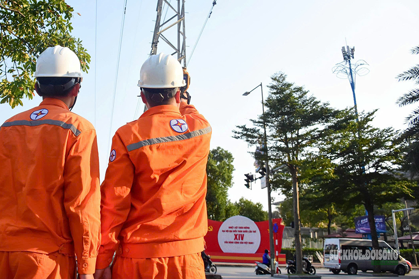 Những người thợ áo cam bám trụ công trình, sẵn sàng ứng trực ngày đêm, góp phần giữ vững dòng điện ổn định phục vụ Đại hội XIV của Đảng.
