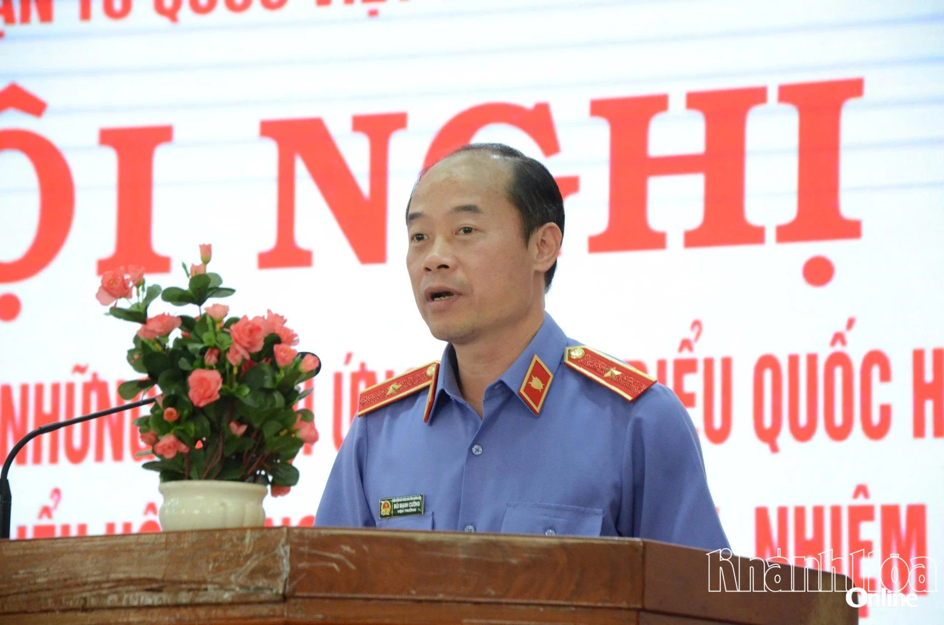 Tại hội nghị, đại diện Ban Thường trực Ủy ban MTTQ Việt Nam tỉnh đã thông qua tiểu sử tóm tắt của người ứng cử đại biểu Quốc hội khóa XVI, Đơn vị bầu cử số 4 gồm các ông, bà: Bùi Mạnh Cường - Tỉnh ủy viên, Ủy viên Ban Chấp hành Đảng bộ Các cơ quan Đảng tỉnh, Bí thư Đảng ủy, Viện trưởng Viện Kiểm sát nhân dân tỉnh; Vũ Đại Dương - Ủy viên Ban Thường vụ Đảng ủy, Thiếu tướng, Phó Tư lệnh Quân chủng Phòng không - Không quân; Đàng Thị Mỹ Hương - Tỉnh ủy viên, Ủy viên Ban Chấp hành Đảng bộ Các cơ quan Đảng tỉnh, Phó Trưởng đoàn chuyên trách Đoàn Đại biểu Quốc hội tỉnh, Ủy viên Ủy ban Văn hóa - Xã hội của Quốc hội khóa XV; Đàng Thị Hồng Lam - Phó Chủ tịch Ủy ban MTTQ Việt Nam xã, Chủ tịch Hội Liên hiệp Phụ nữ xã Phước Hữu; Mấu Thị Lệ Thu - Ủy viên Ban Thường vụ Đảng ủy, Phó Chủ tịch UBND xã Khánh Sơn.