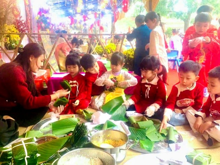 Nhìn những đôi bàn tay nhỏ nhắn, còn lóng ngóng nhưng đầy nỗ lực khi lần đầu gấp lá dong, chẻ lạt, gói bánh chưng, người ta mới thấy hết giá trị của việc giáo dục di sản. Dưới sự hướng dẫn của thầy cô và cả những chiến sĩ quân đội, chiếc bánh chưng xanh không chỉ là món ăn, mà là biểu tượng của sự vuông tròn, đủ đầy.