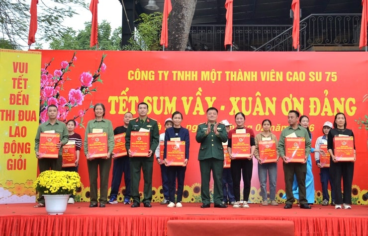Đón Tết ở Tùng Thiện còn mang một sắc thái đặc biệt khác: Sắc xanh áo lính hòa quyện cùng sắc áo xanh công nhân. Tại Nhà máy Z175 (Công ty TNHH một thành viên Cao su 75) trực thuộc Tổng cục Công nghiệp Quốc phòng - Bộ Quốc phòng với chương trình “Tết sum vầy - Xuân ơn Đảng” đã trở thành điểm tựa tinh thần vững chãi cho những người lao động.