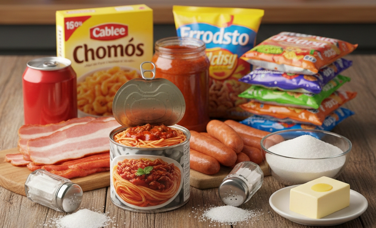 Thực phẩm chế biến sẵn thường chứa nhiều đường, muối và chất béo . Ảnh do AI tạo
