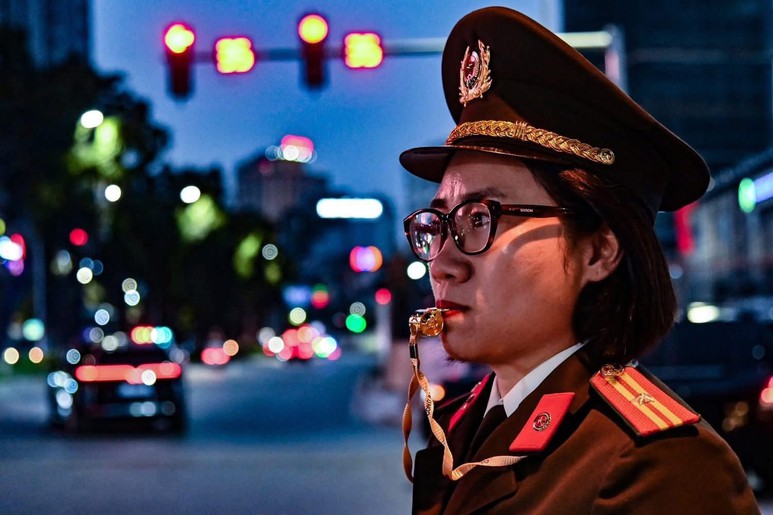 Nữ chiến sĩ Công an Thủ đô cùng lực lượng đảm bảo an ninh trật tự trên các tuyến phố
