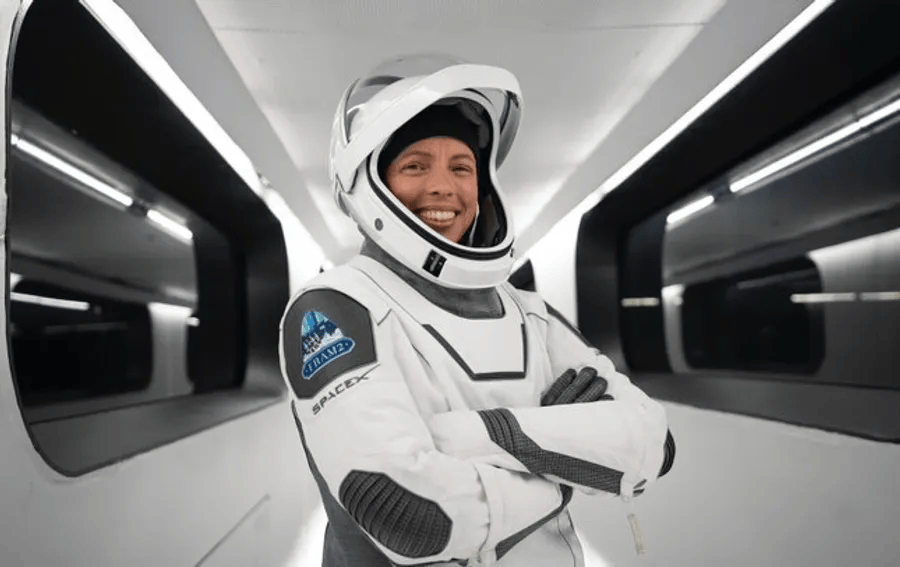 Hayley Arceneaux, 34 tuổi, quốc tịch Mỹ, đã viết nên một chương mới đầy xúc động cho y học hàng không vũ trụ khi trở thành sĩ quan y tế của sứ mệnh Inspiration4 năm 2021. Cô không chỉ là người Mỹ trẻ tuổi nhất từng bay vào quỹ đạo vào thời điểm đó. Căn bệnh ung thư xương năm 10 tuổi đã truyền cảm hứng cho Hayley trong sự nghiệp làm bác sĩ chăm sóc trẻ ung thư và trở thành người đầu tiên mang một bộ phận cơ thể giả (một thanh titan thay thế xương đùi) chinh phục không gian. Hayley đại diện cho cột trụ "Hy vọng" và chính sự hiện diện của cô tại Bệnh viện Nhi St. Jude với tư cách là một người hỗ trợ y tế đã tạo nên một sợi dây liên kết tinh thần mạnh mẽ giữa vũ trụ và Trái Đất.