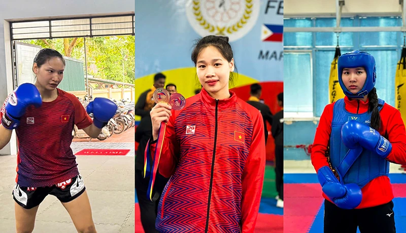 Các “ngôi sao” thể thao tuổi Ngọ (từ phải qua trái): Nguyễn Thị Phương Hậu (muay), Trương Thị Thương (karate), Trần Thị Hậu (võ cổ truyền).