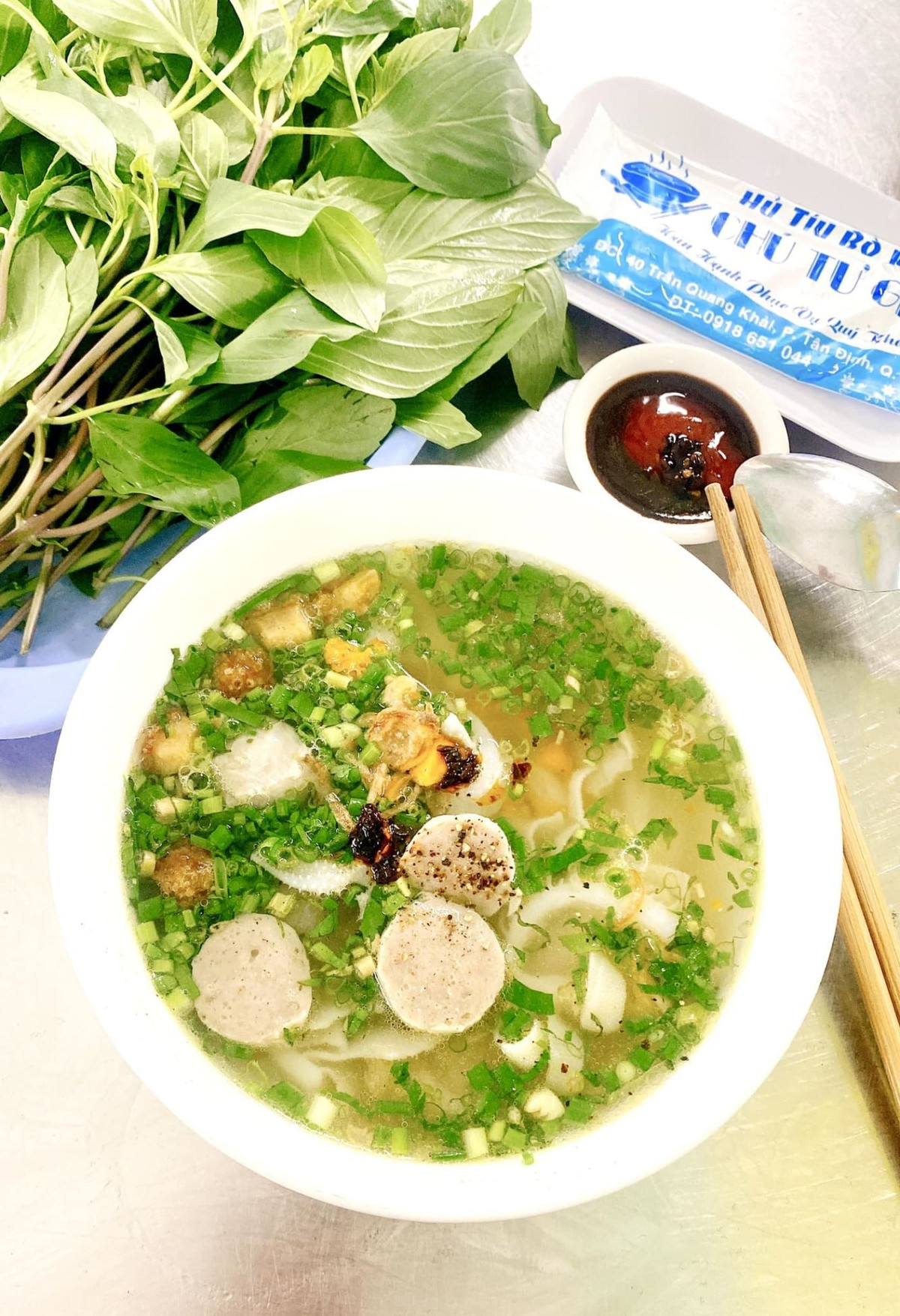 Nhắc đến những quán hủ tiếu được lòng người Sài Gòn, không thể bỏ qua quán bò viên chú Tư ở đường Trần Quang Khải. Ra đời từ năm 1996, quán nổi tiếng với nước dùng trong, thơm nhẹ mùi xương bò và những viên bò viên tròn nhỏ nhưng chắc thịt, đậm vị. Ảnh Vietking