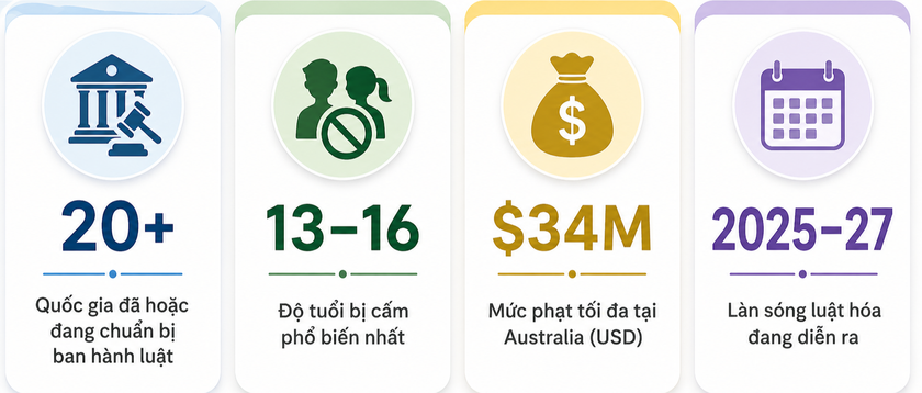 - Các quốc gia khác: Áo (dưới 14 tuổi), Ba Lan và Slovenia (dưới 15 tuổi) cũng đang ráo riết soạn thảo các dự luật tương tự.