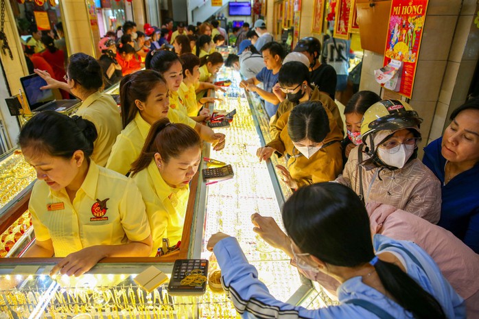 Người dân mua vàng tại tiệm vàng Mi Hồng Ảnh: HOÀNG TRIỀU