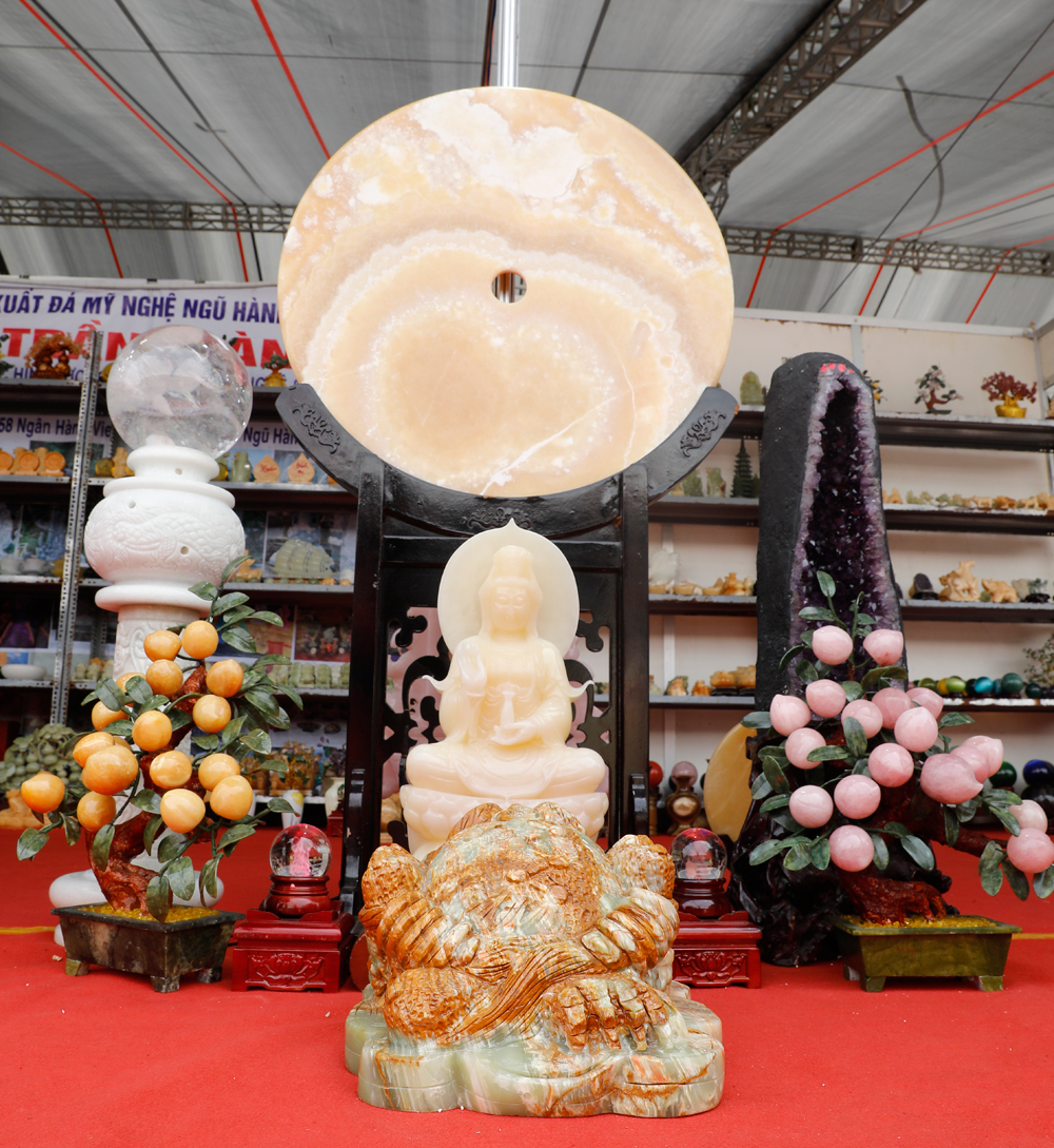 Cụm tác phẩm Quan Thế âm Bồ Tát dưới trăng, chế tác từ đá quý của của hộ sản xuất, kinh doanh đá Ngũ Hành Sơn Trần Toán (Thành phố Đà Nẵng).