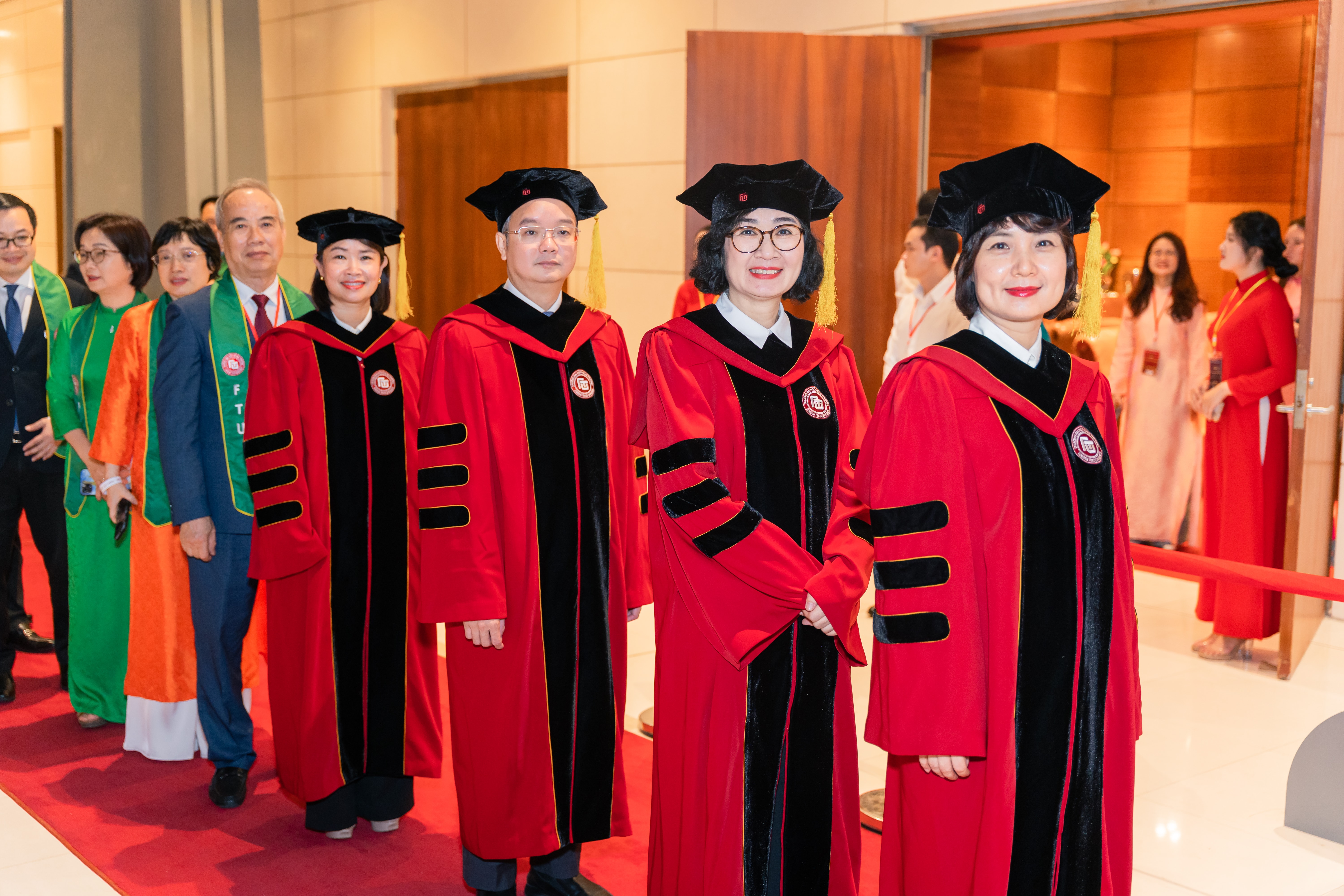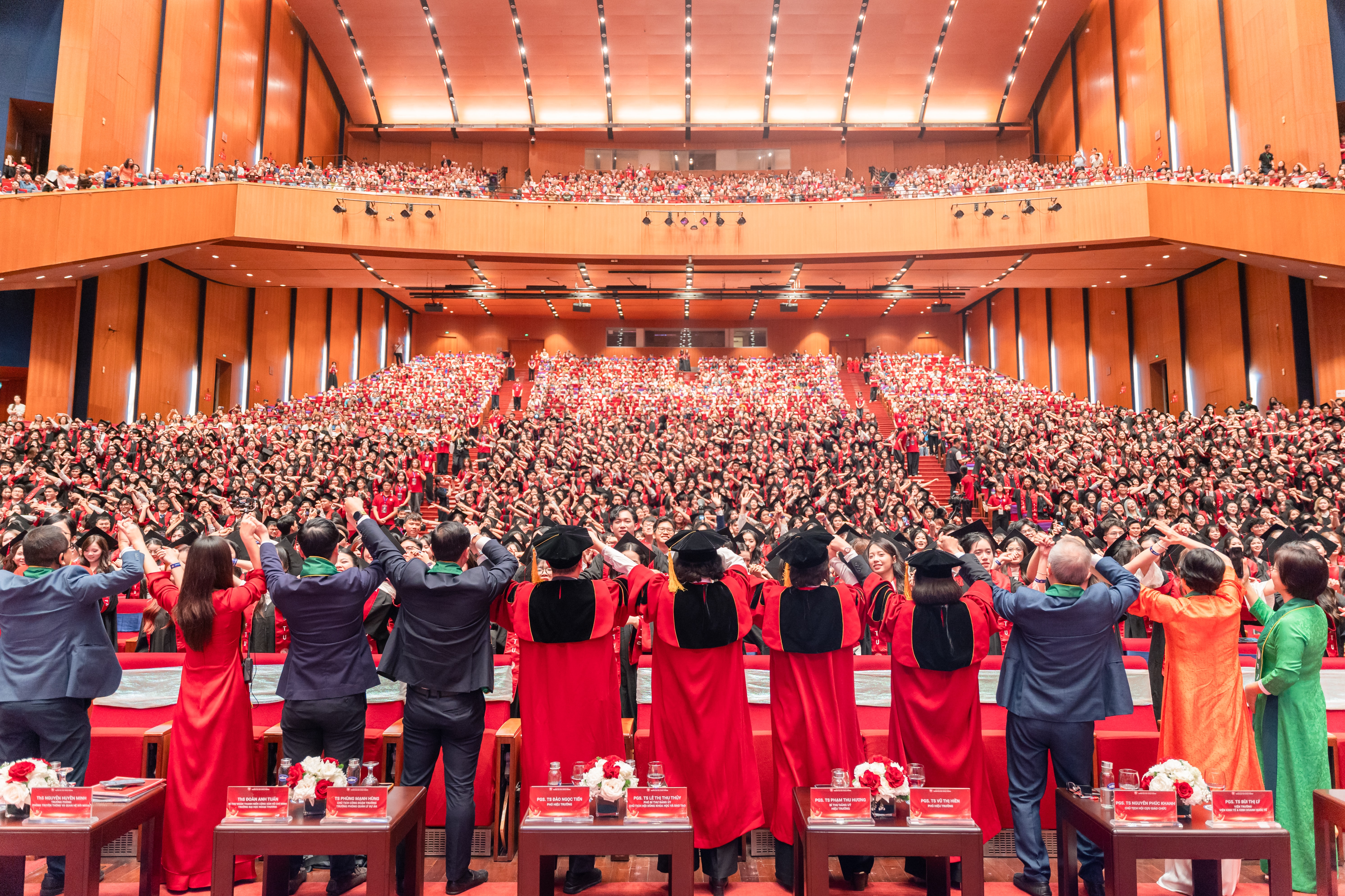 Lãnh đạo Trường Đại học Ngoại thương tại lễ trao bằng tốt nghiệp đợt 1 năm 2026 cho hơn 1.200 sinh viên hệ đào tạo chính quy khóa 61 và các khóa bổ sung của Trụ sở chính tại Hà Nội và Cơ sở Quảng Ninh.