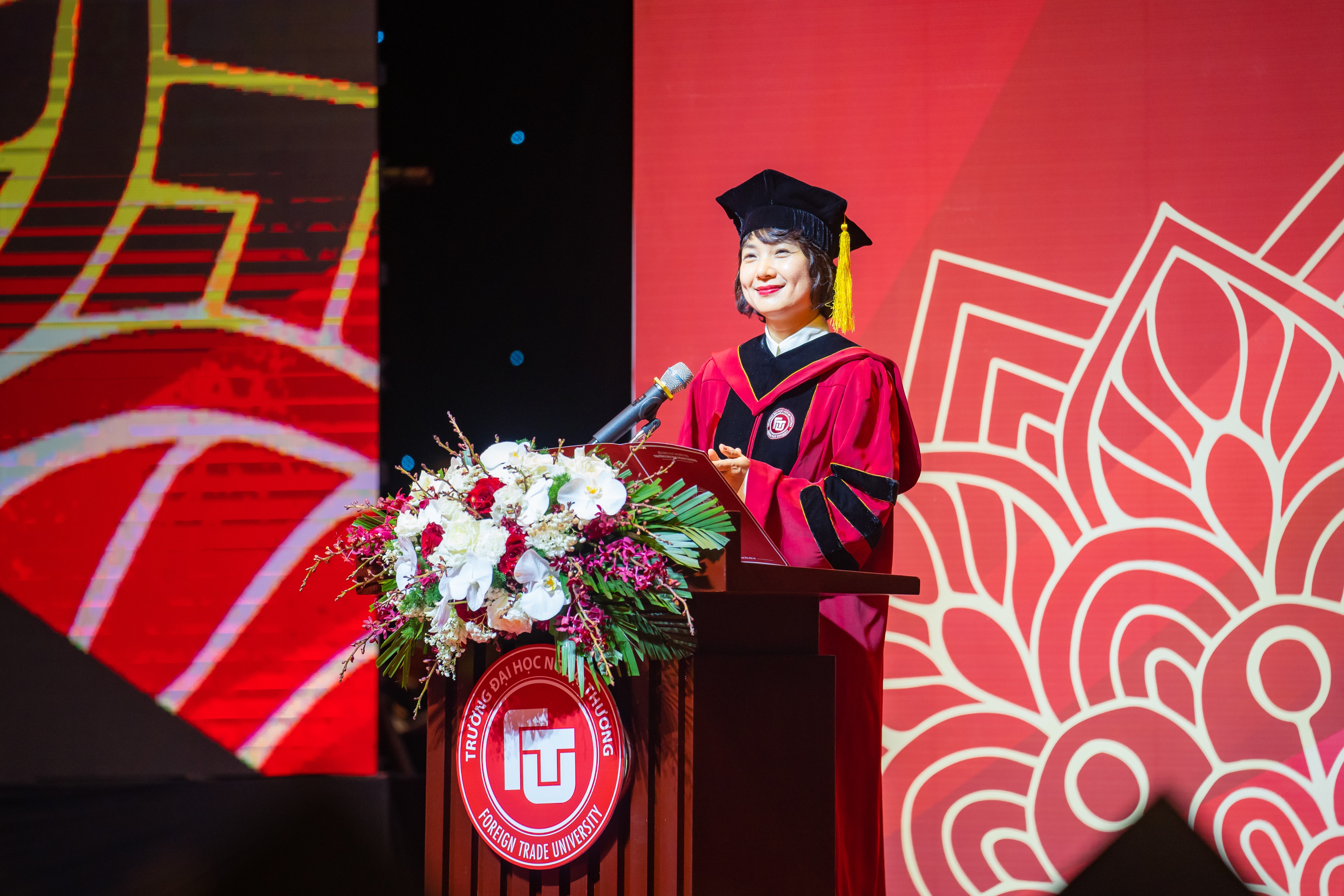 Hiệu trưởng Trường Đại học Ngoại thương nhắn nhủ các tân cử nhân: bất cứ con đường sự nghiệp nào mang lại giá trị cho cuộc sống đều trân quý và hành trình để đạt được những thành tựu trên con đường đó đều cần rất nhiều nỗ lực và công sức. Các em hãy dám dấn thân để theo đuổi ước mơ và lý tưởng của mình, nhưng cũng hãy hiểu rằng hành trình theo đuổi ước mơ được tạo nên bởi rất nhiều chặng đường nhỏ, đi qua mỗi chặng đường nhỏ tức là chúng ta tiến gần hơn tới ước mơ của mình bởi vậy hãy tin vào bản thân mình và luôn bền bỉ trên mỗi chặng đường mà chúng ta đi qua.