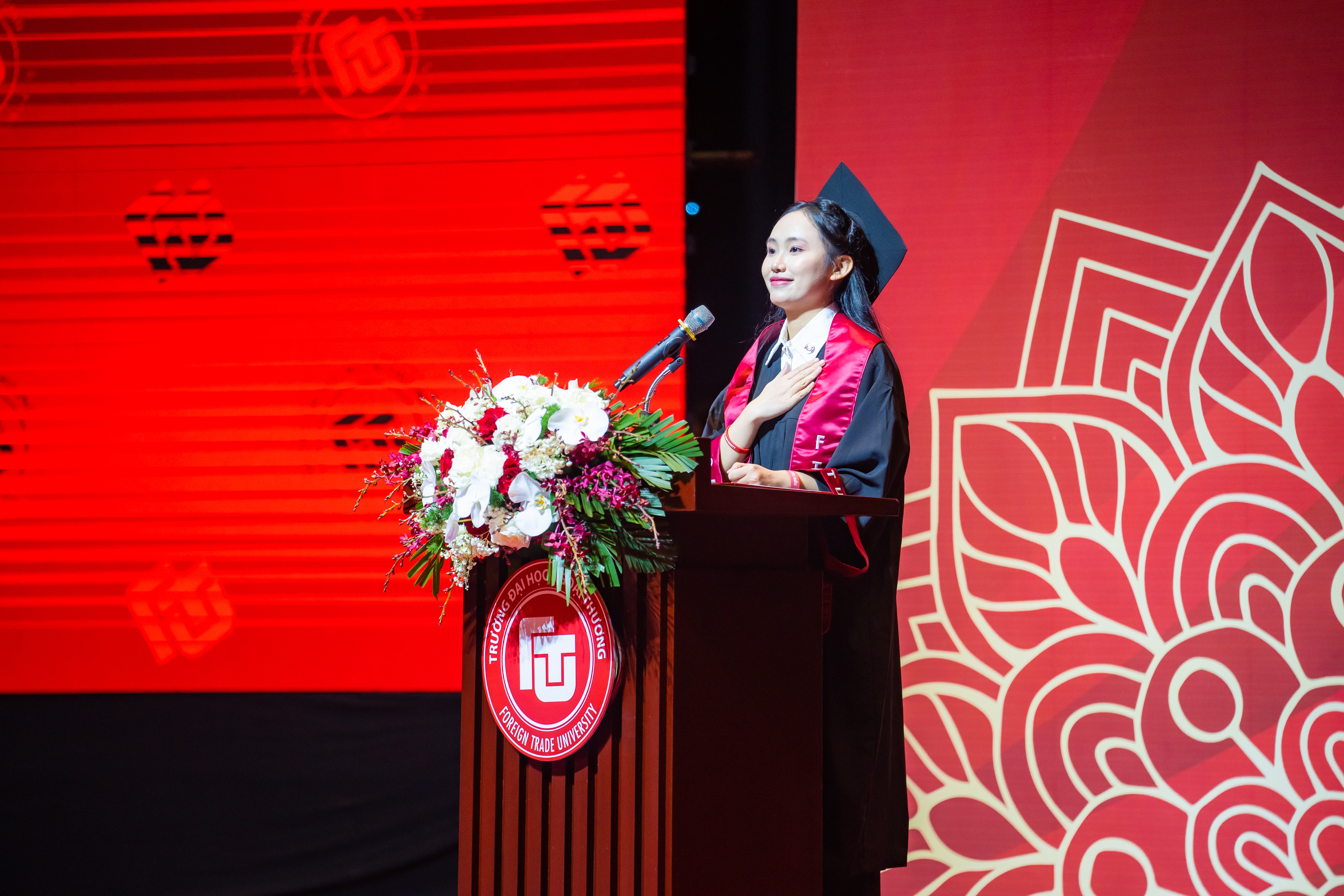 Cũng trong chương trình, đại diện sinh viên tiêu biểu tốt nghiệp đợt này cùng các tân cử nhân đã thực hiện nghi lễ tuyên thệ, tiếp nối truyền thống, giá trị tinh thần Ngoại thương.