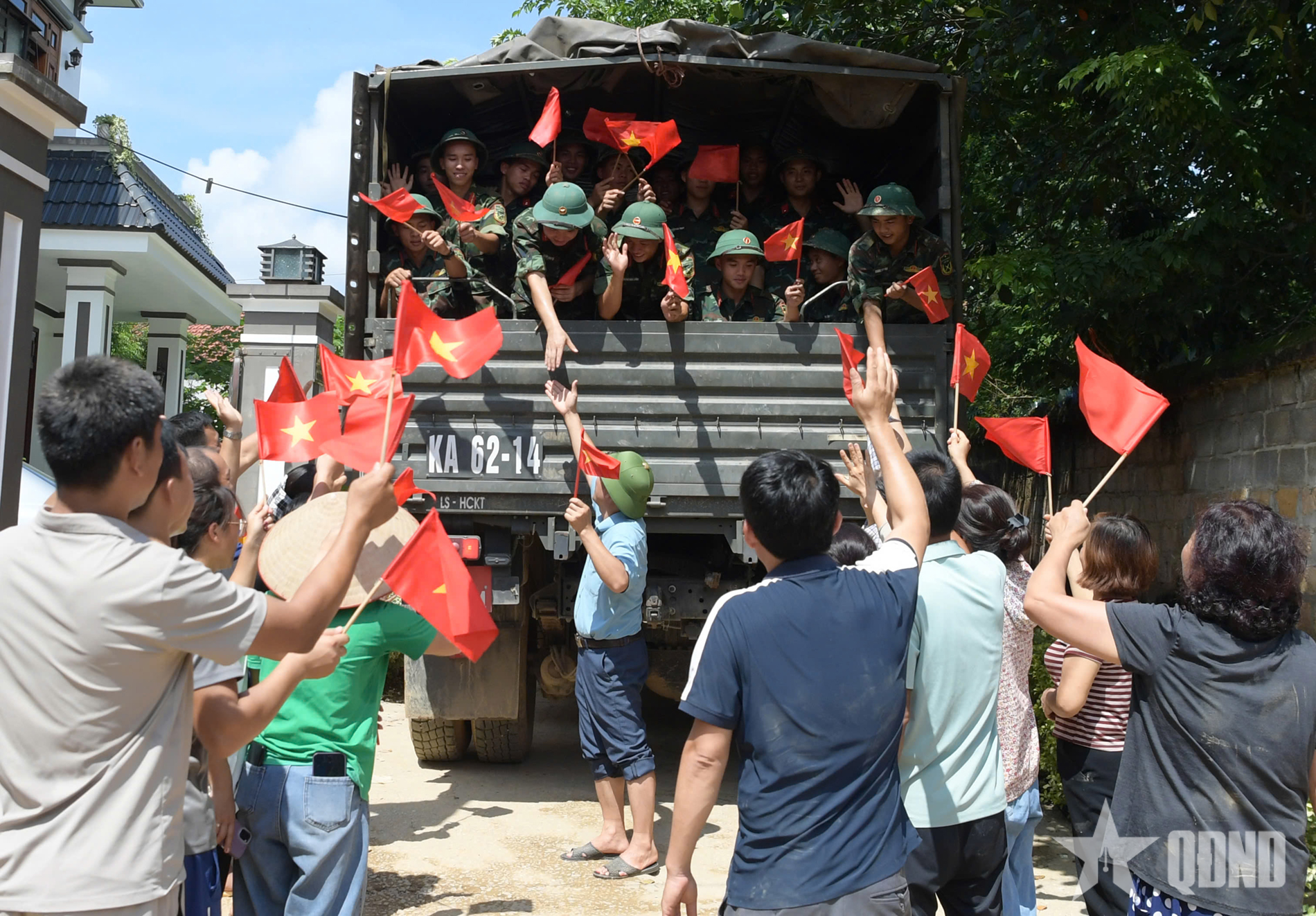 Người dân xã Hữu Lũng (tỉnh Lạng Sơn) lưu luyến chia tay các chiến sĩ Trung đoàn 12 (Sư đoàn Bộ binh 3, Quân khu 1) hoàn thành nhiệm vụ giúp nhân dân khắc phục hậu quả mưa lũ, trở về đơn vị.
