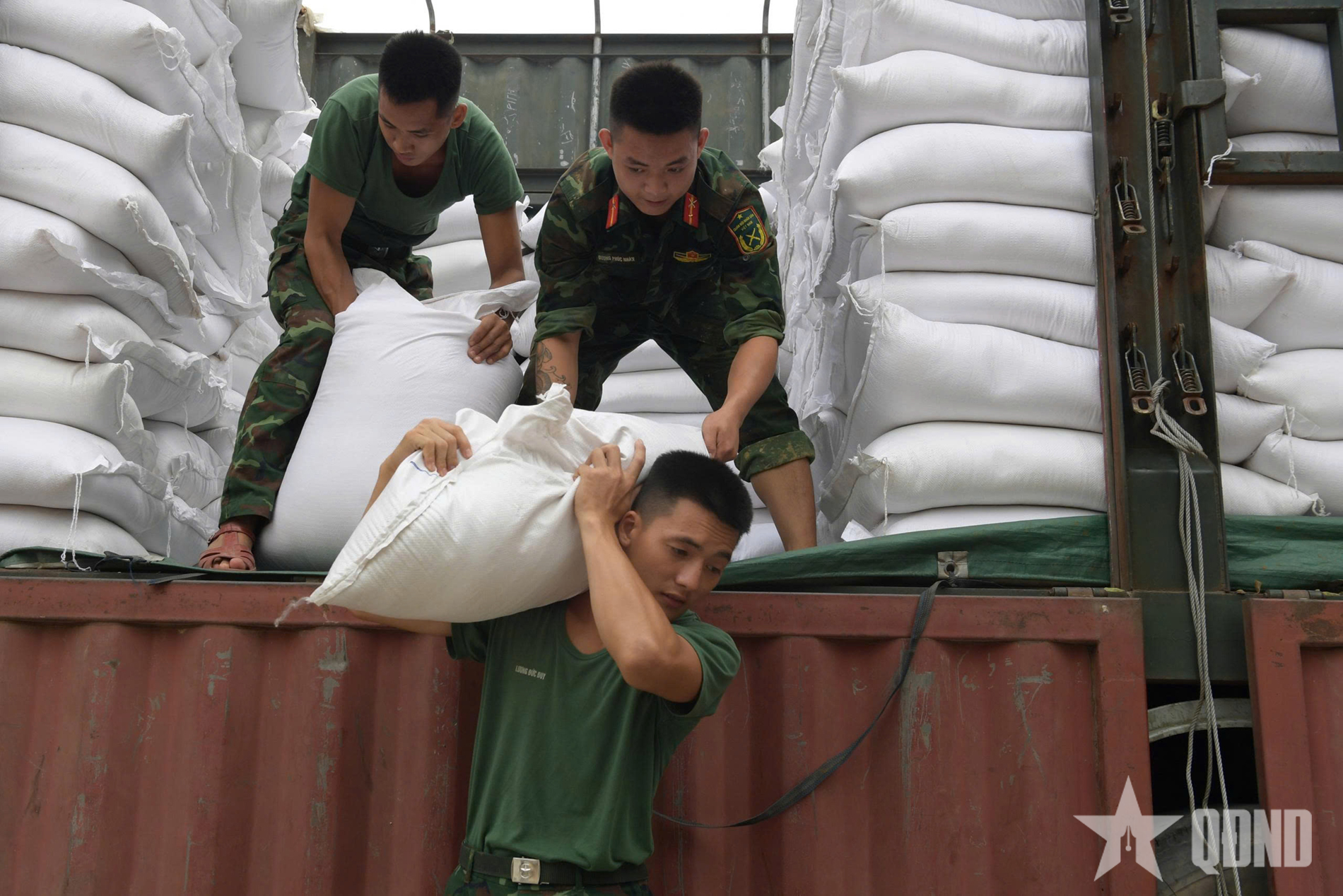 Trong ngày 10-10, các chiến sĩ Trung đoàn 123 (Bộ CHQS tỉnh Lạng Sơn) và Trung đoàn 12 (Sư đoàn Bộ binh 3, Quân khu 1) khẩn trương vận chuyển hơn 300 tấn gạo cứu trợ các hộ dân bị ảnh hưởng bởi mưa lũ.