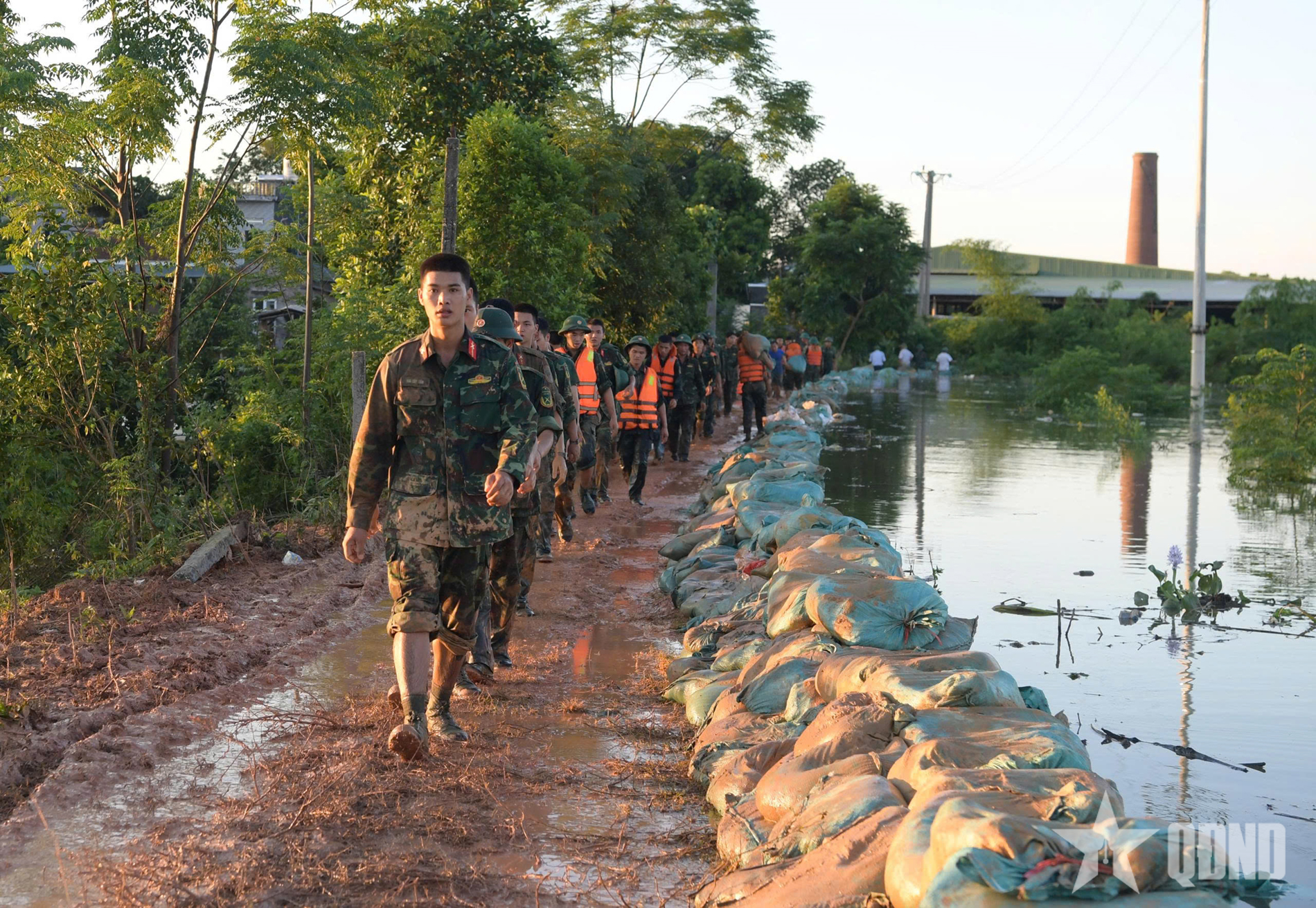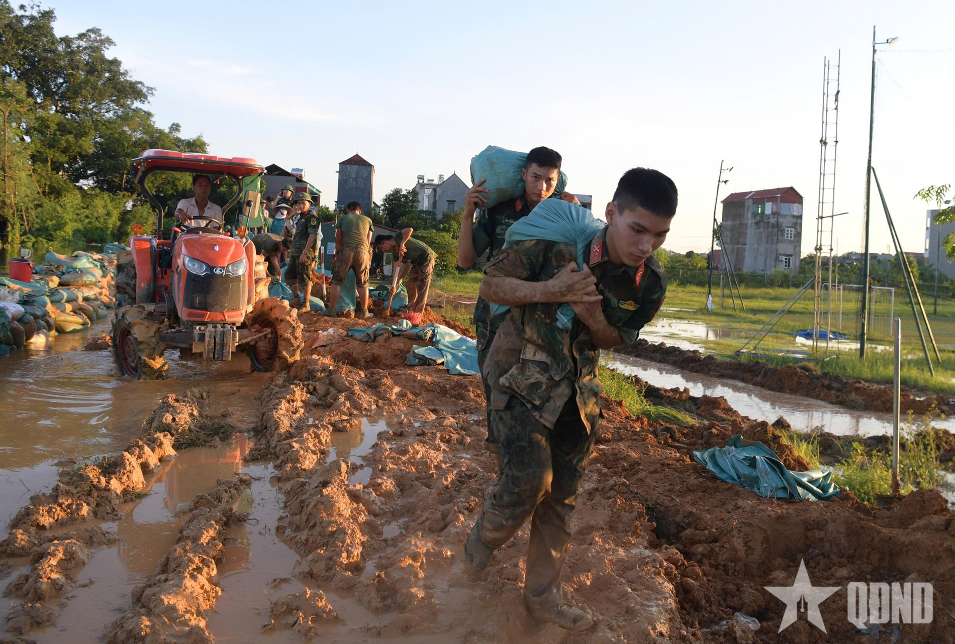 Từ 2 giờ đến 17 giờ ngày 9-10, hàng trăm cán bộ, chiến sĩ Trung đoàn 2 (Sư đoàn Bộ binh 3, Quân khu 1) cùng nhân dân xã Tiên Lục (tỉnh Bắc Ninh) đắp bờ ngăn nước lũ tràn vào khu dân cư.