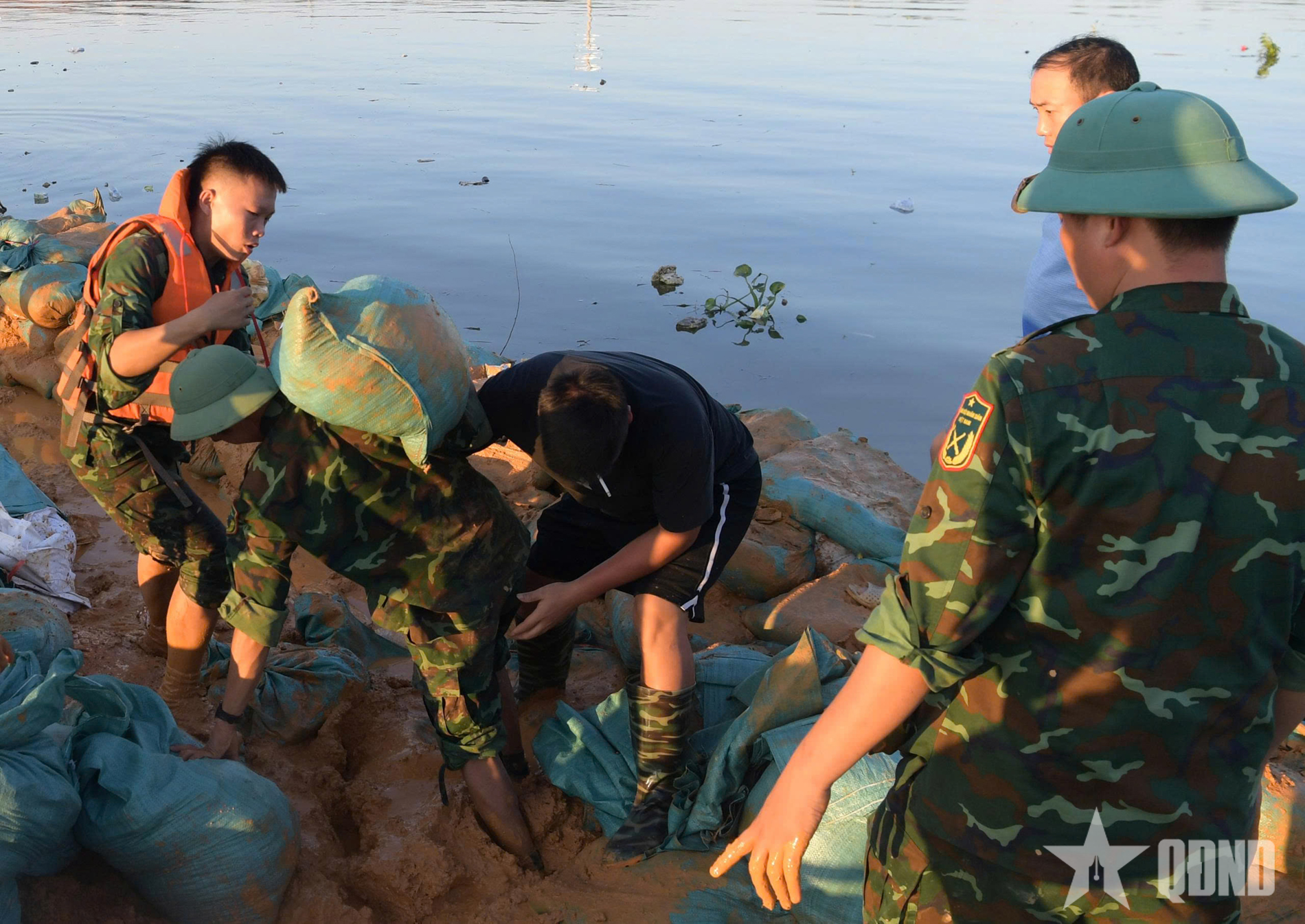 Đôi tay chai sạn, đôi vai rắn rỏi cùng tinh thần quả cảm, vì nhân dân quên mình, hàng triệu bao đất đã được chuyền tay nhau, tạo thành bức tường thành vững chãi ngăn nước lũ tràn qua, che chắn từng mái nhà, từng sinh mạng, tài sản cho nhân dân.