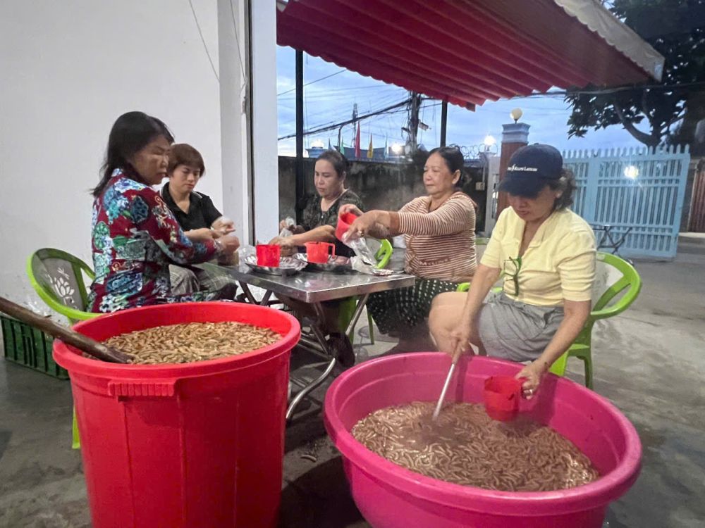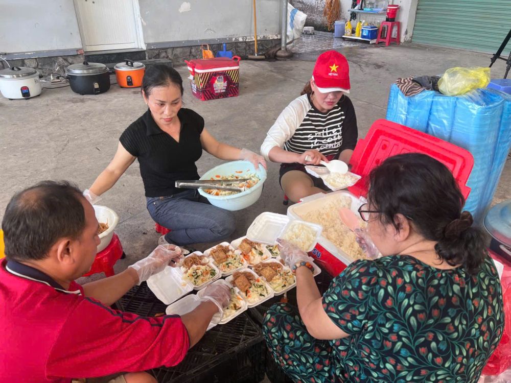 Không dừng lại ở việc phát cháo sáng, nhóm chị em tiểu thương Mỹ Tho còn duy trì nấu những suất cơm chay nóng hổi, trao đi 4 lần mỗi tháng; trên tinh thần tự nguyện, người góp sức, người góp của; ai có điều kiện hơn thì chia sẻ nhiều, ai khó khăn hơn thì hỗ trợ bằng công lao động.