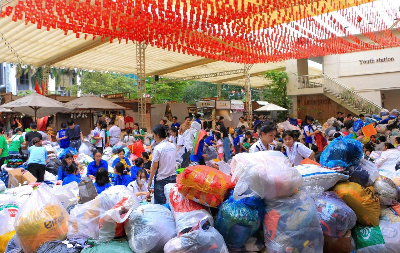 Lực lượng thanh niên, sinh viên chia nhau đảm nhiệm từng phần việc: Tiếp nhận hàng, phân loại, đóng gói theo danh mục rồi vận chuyển ra khu tập kết. Nhờ sự phối hợp nhịp nhàng, lượng hàng hóa lớn vẫn được xử lý nhanh chóng và trật tự.