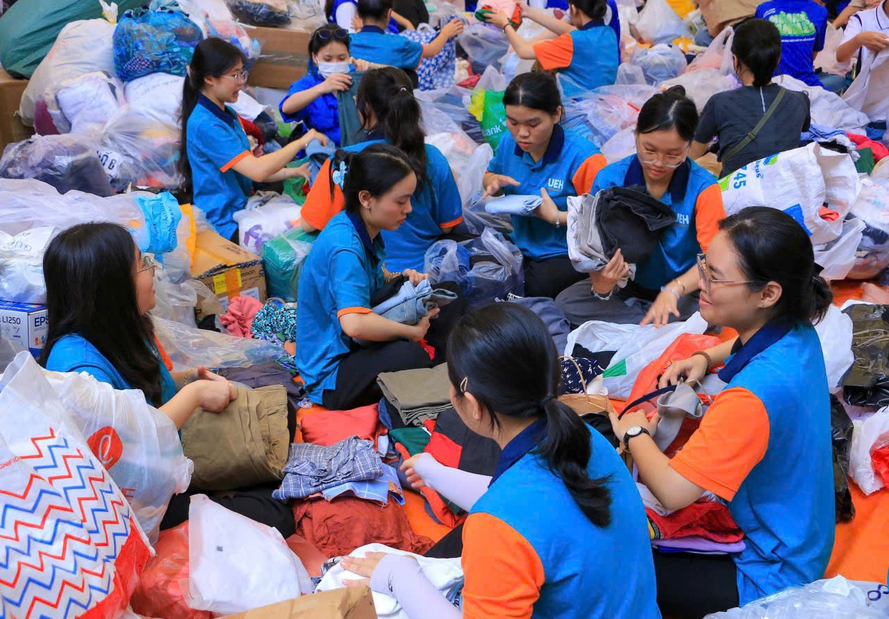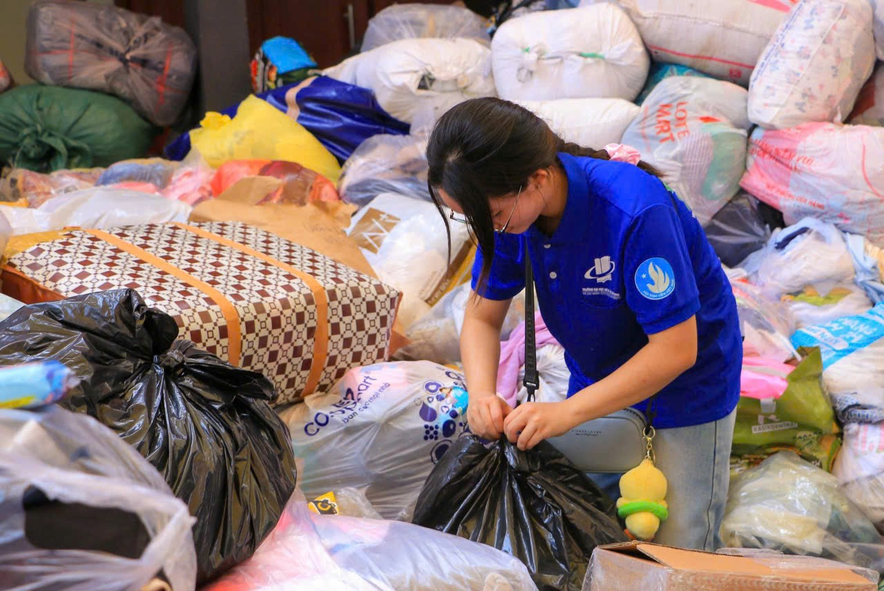 Hàng hóa nhiều, nhưng các bạn trẻ vẫn miệt mài đóng gói, phân loại hàng hóa không một phút nghỉ ngơi. "Sự đồng lòng và tinh thần sẻ chia của tuổi trẻ TP. HCM đã góp phần lan tỏa tinh thần tương thân tương ái, tiếp sức kịp thời cho đồng bào vùng lũ vượt qua khó khăn", một bạn tình nguyện viên chia sẻ.
