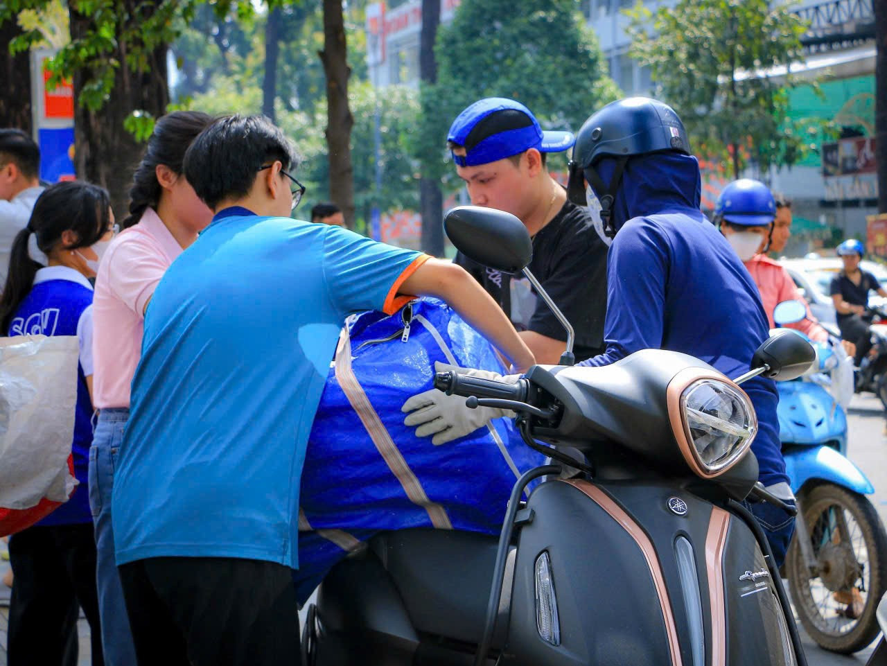 Từ sáng sớm, người dân TP. HCM đã chở hàng hóa đến các điểm tiếp nhận cứu trợ.