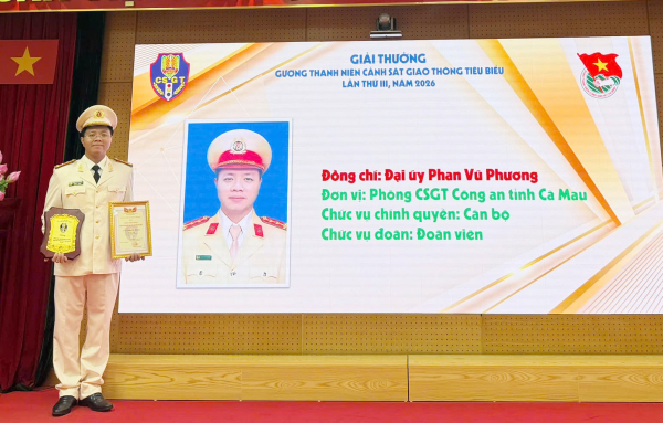 Đại úy Phan Vũ Phương nhận Giải thưởng “Gương thanh niên CSGT tiêu biểu” năm 2026.