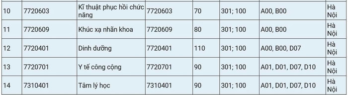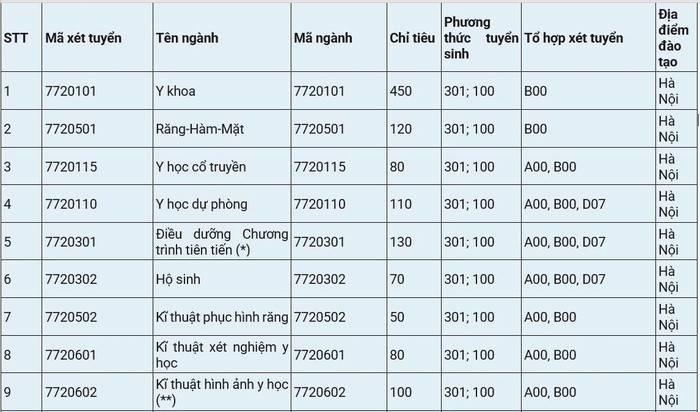 Dưới đây là chỉ tiêu, tổ hợp xét tuyển từng ngành của Trường Đại học Y Hà Nội năm nay: